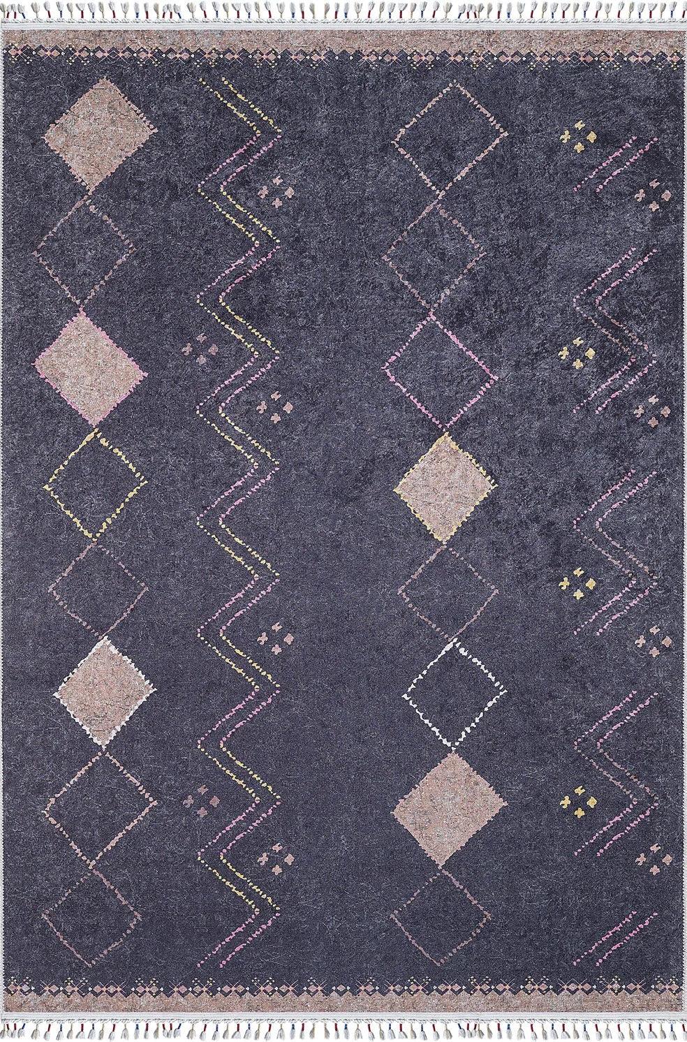Mor Bordürlü Modern Desenli Yıkanabilir Halı
