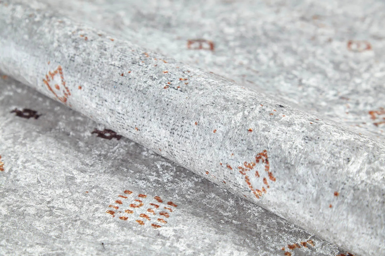 Örgü Saçaklı Açık Gri Minimal Etnik Halı