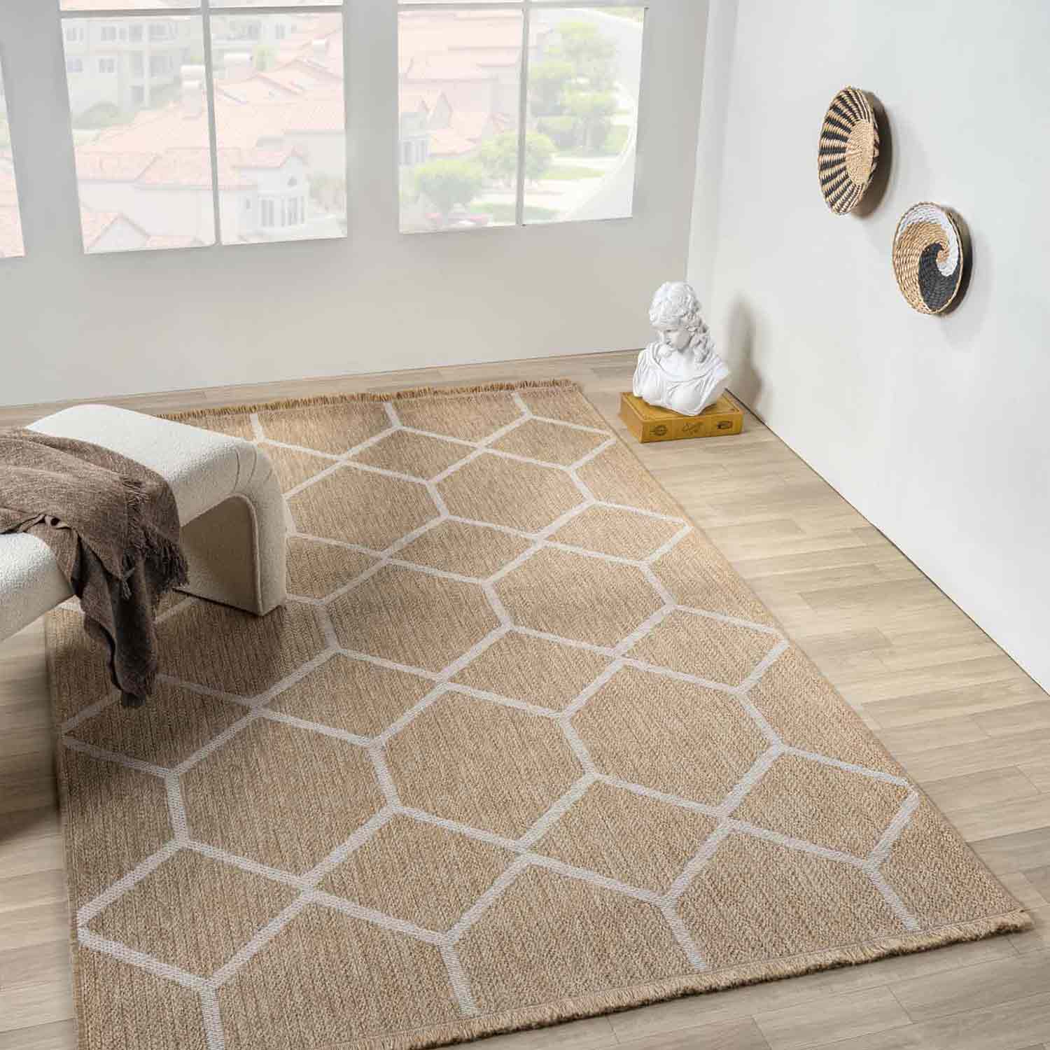Bej Beyaz Altıgen Geometrik Modern Jüt Görünümlü Halı – Pera Halı İçeriğe atla