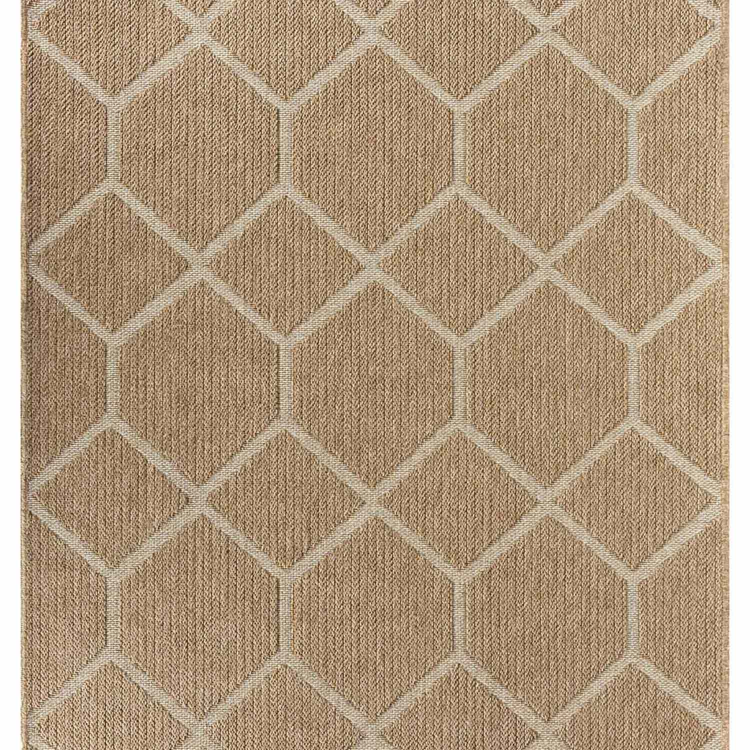 Bej Beyaz Altıgen Geometrik Modern Jüt Görünümlü Halı