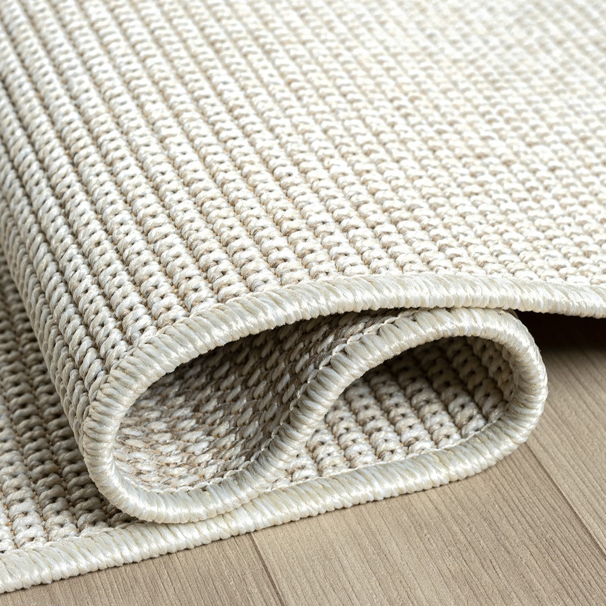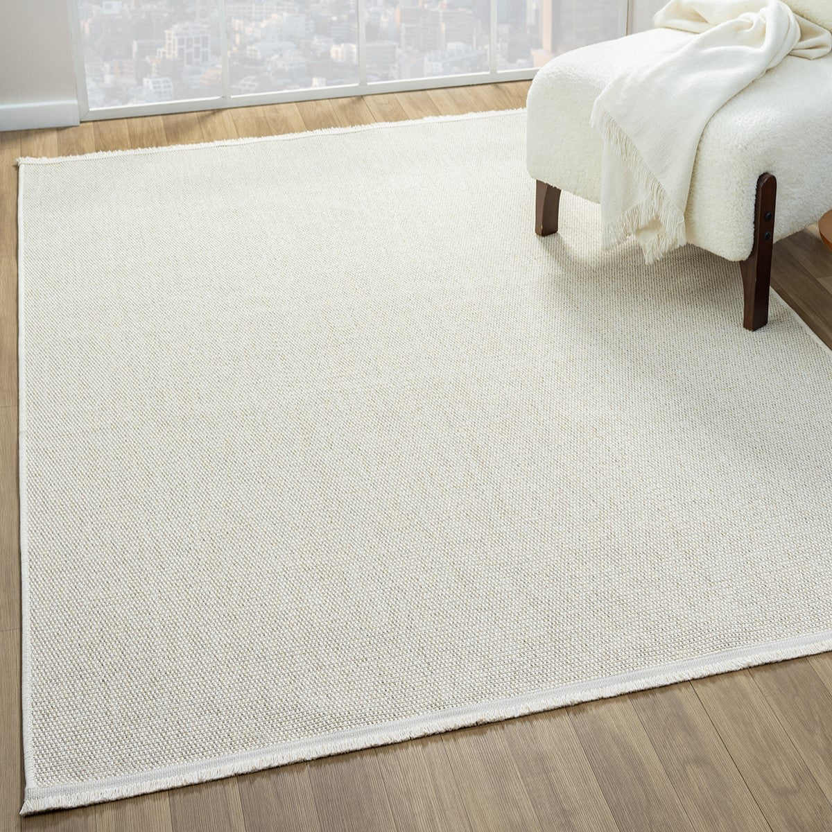 Modern ev dekorasyonuna uyum sağlayan, pratik kullanımlı ve şık halılarımızla tanışın! Bu dijital baskılı, yıkanabilir halı; krem ve beyaz tonlarının kalın ve belirgin dokuma (hasır/jüt benzeri) efektiyle birleştiği, düz ve sade görünümlü minimalist bir tasarıma sahiptir. Zemininiz için ideal bir açıklık ve ferahlık sunarken, dokusuyla zengin bir his verir. Kolay temizlenebilir yapısıyla çocuklu ve evcil hayvanlı evler için idealdir. Evinizin havasını anında değiştirin!