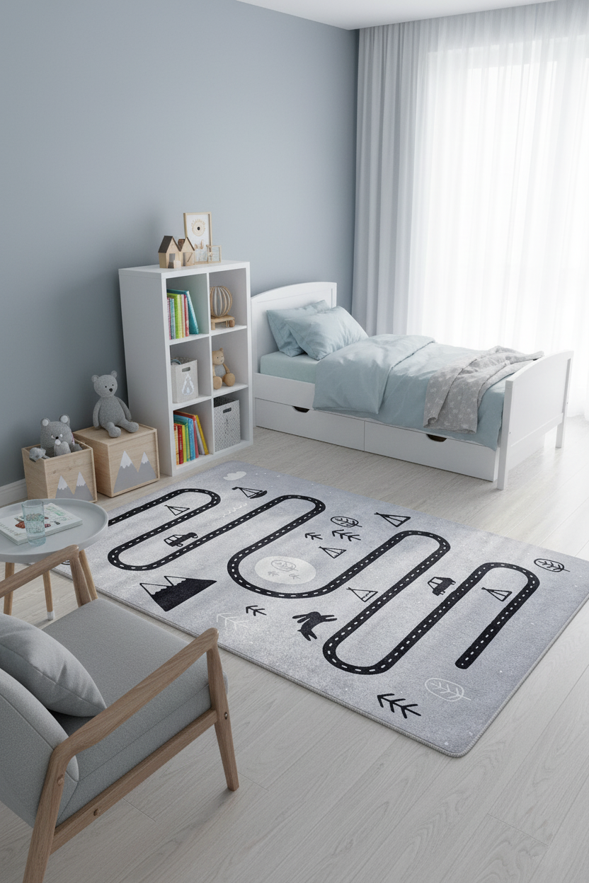 Eşsiz gri ve siyah yol haritası desenli çocuk oyun halısı, çocukların yaratıcılığını teşvik eden, eğlenceli ve interaktif bir oyun alanı sunar. Arkadaşlarıyla birlikte oynayabilecekleri geniş bir alan sağlayan bu halı, sadece bir oyun halısı değil, aynı zamanda çocuk odaları ve oyun alanları için harika bir dekoratif parçadır. *Oyuncaklar dahil değildir.