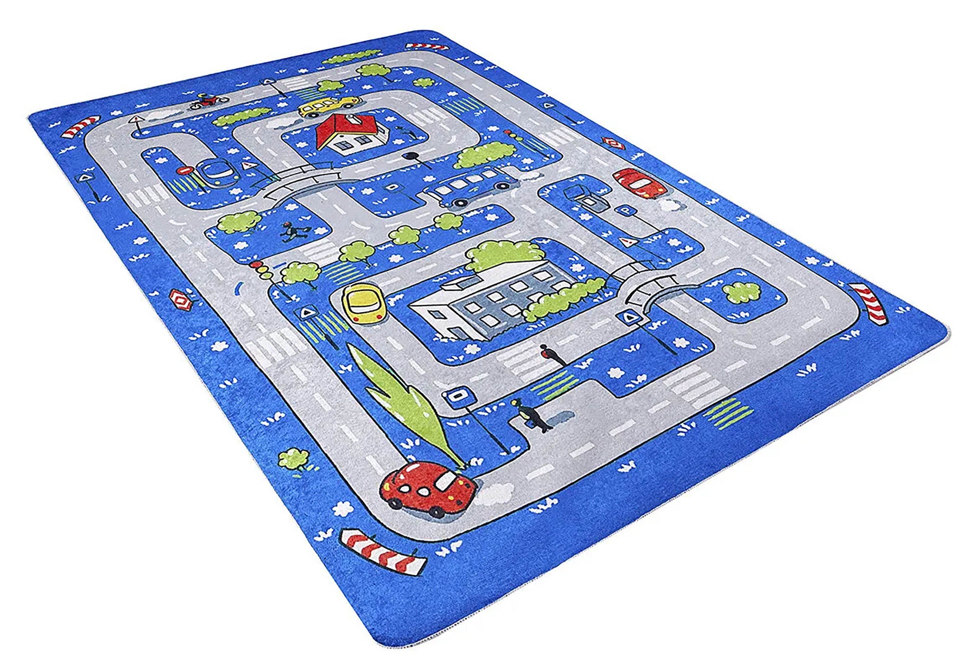 Mavi Kasaba Yol Haritası Çocuk Halısı