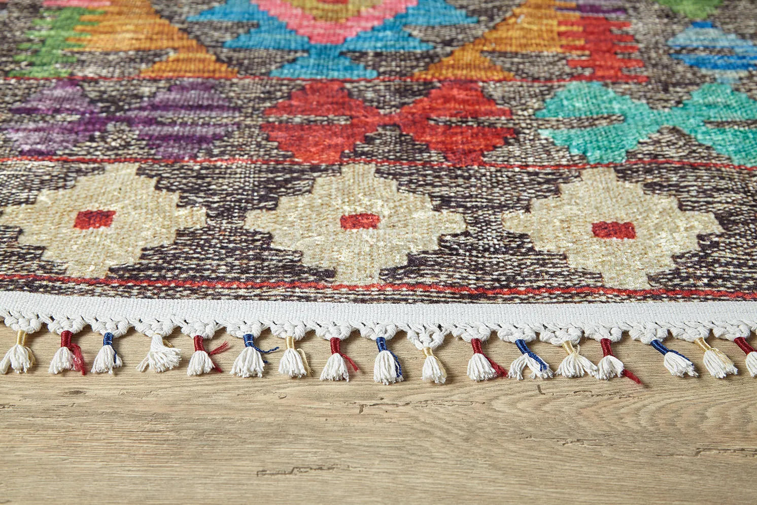 Örgü Saçaklı Çok Renkli Etnik Kilimli Halı – Pera Halı İçeriğe atla