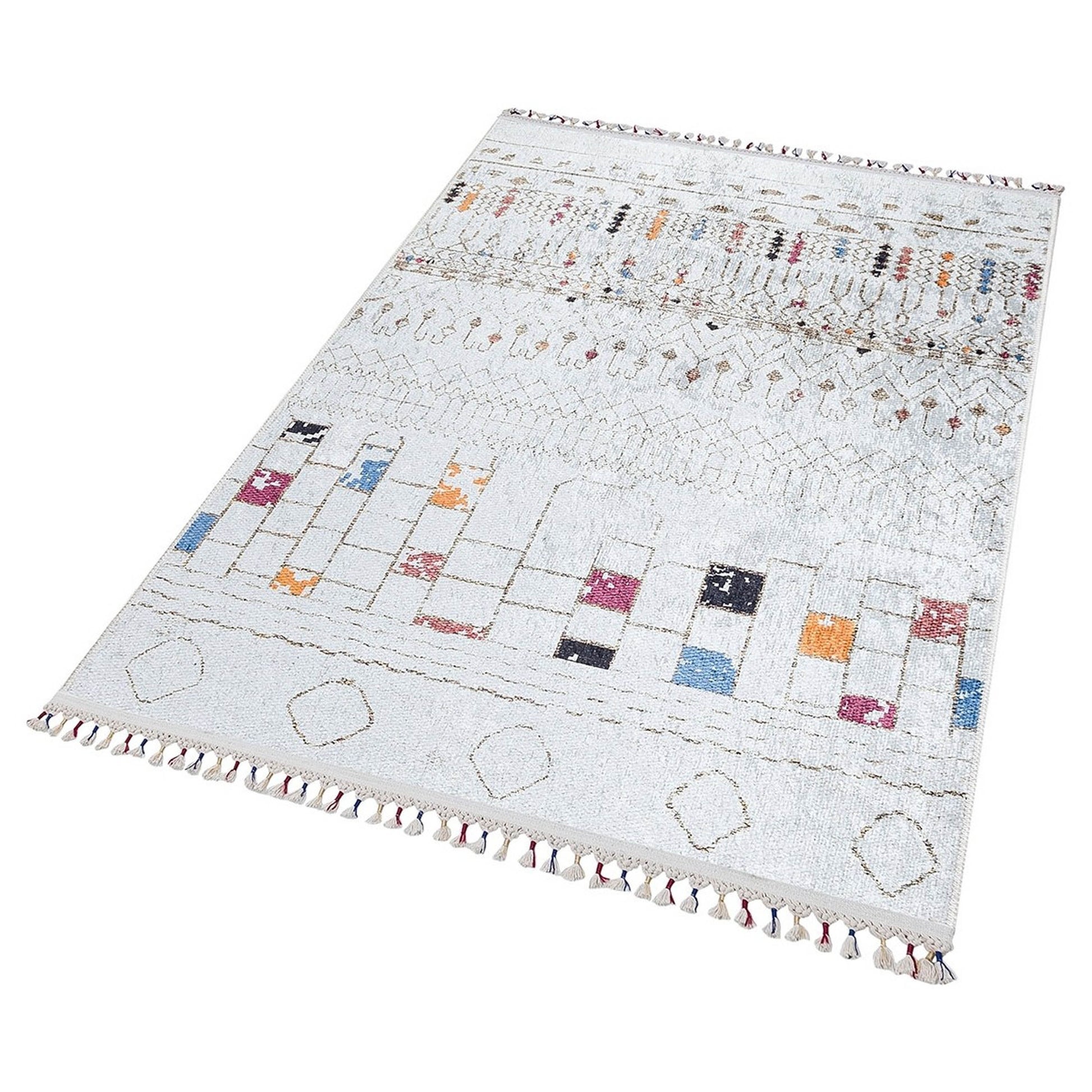 Krem Renkli Etnik Desenli Modern Kilim Halı