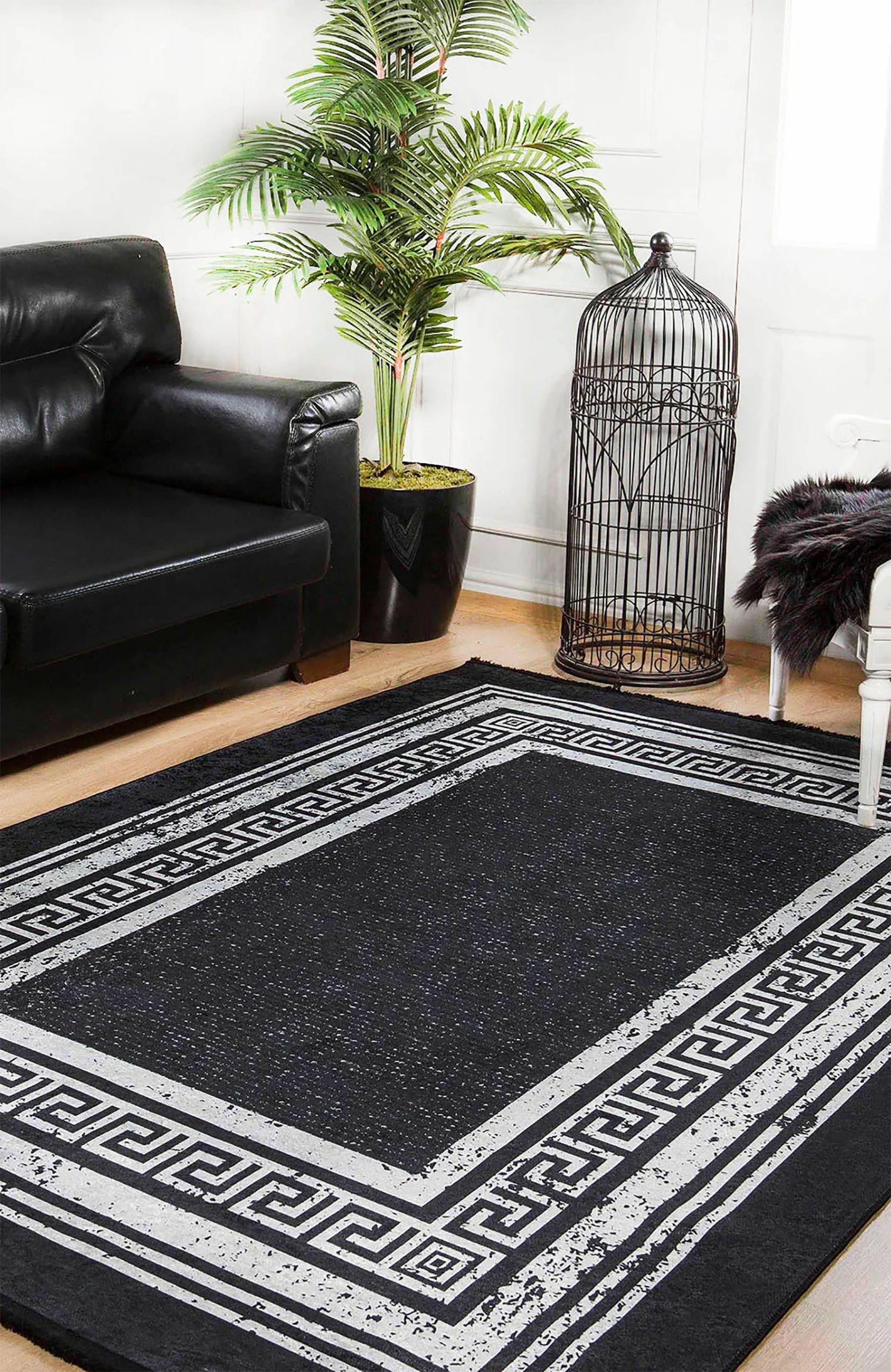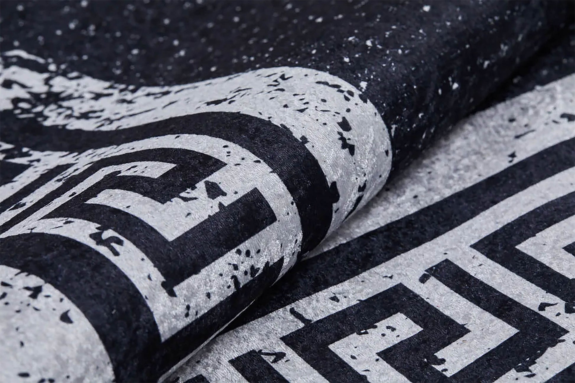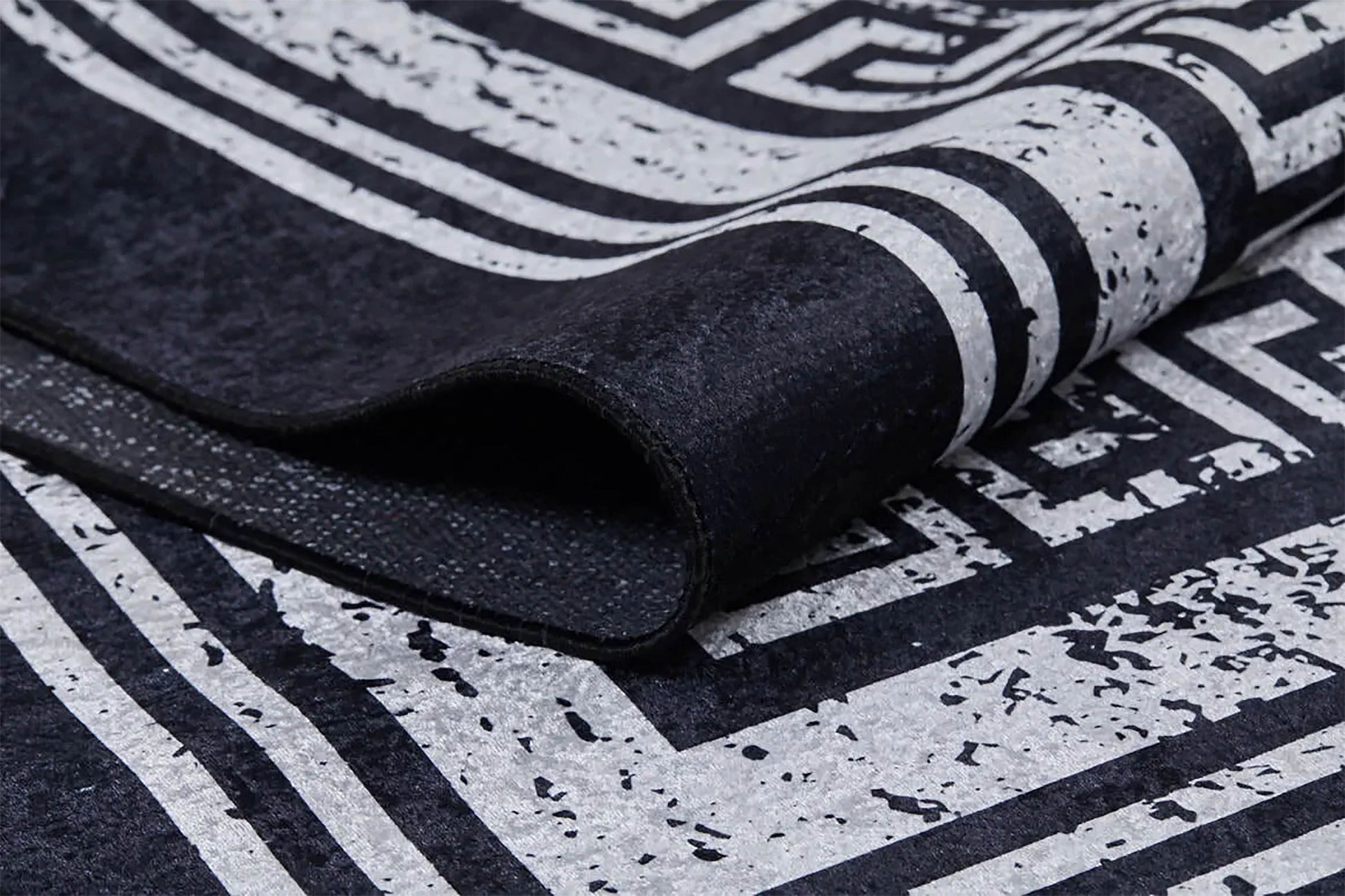 Siyah Beyaz Yunan Anahtar Desenli Klasik Bordürlü Halı
