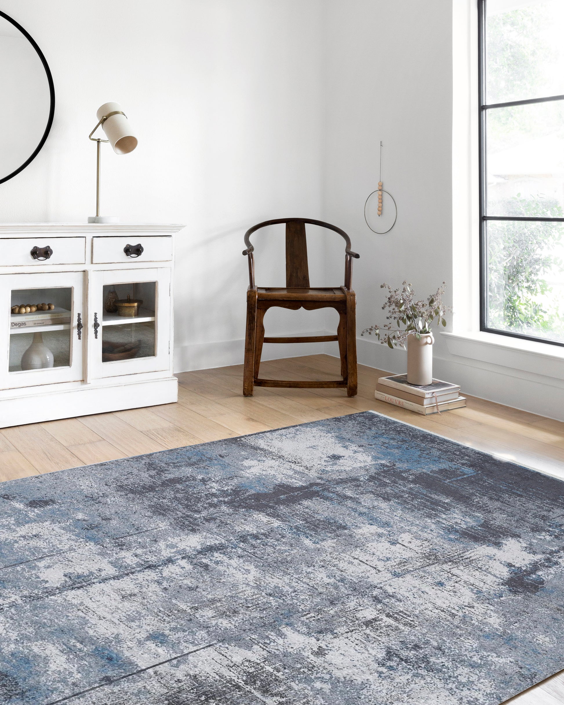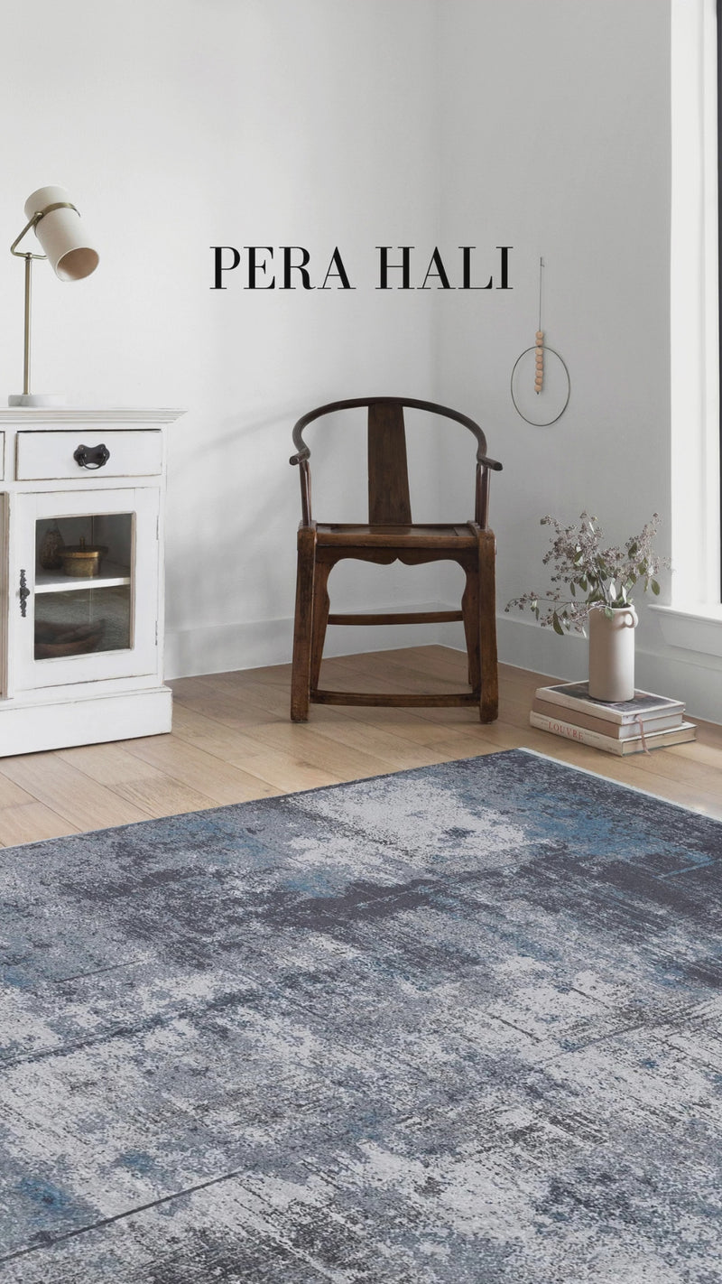 Modern ev dekorasyonuna uyum sağlayan, pratik kullanımlı ve şık halılarımızla tanışın! Bu dijital baskılı, yıkanabilir halı; antrasit, gri ve canlı mavi tonlarının çarpıcı geçişleriyle soyut ve dinamik bir eskitme deseni sunar. Yaşam alanınıza modern sanat eseri havası katar. Kolay temizlenebilir yapısıyla çocuklu ve evcil hayvanlı evler için idealdir. Evinizin havasını anında değiştirin!