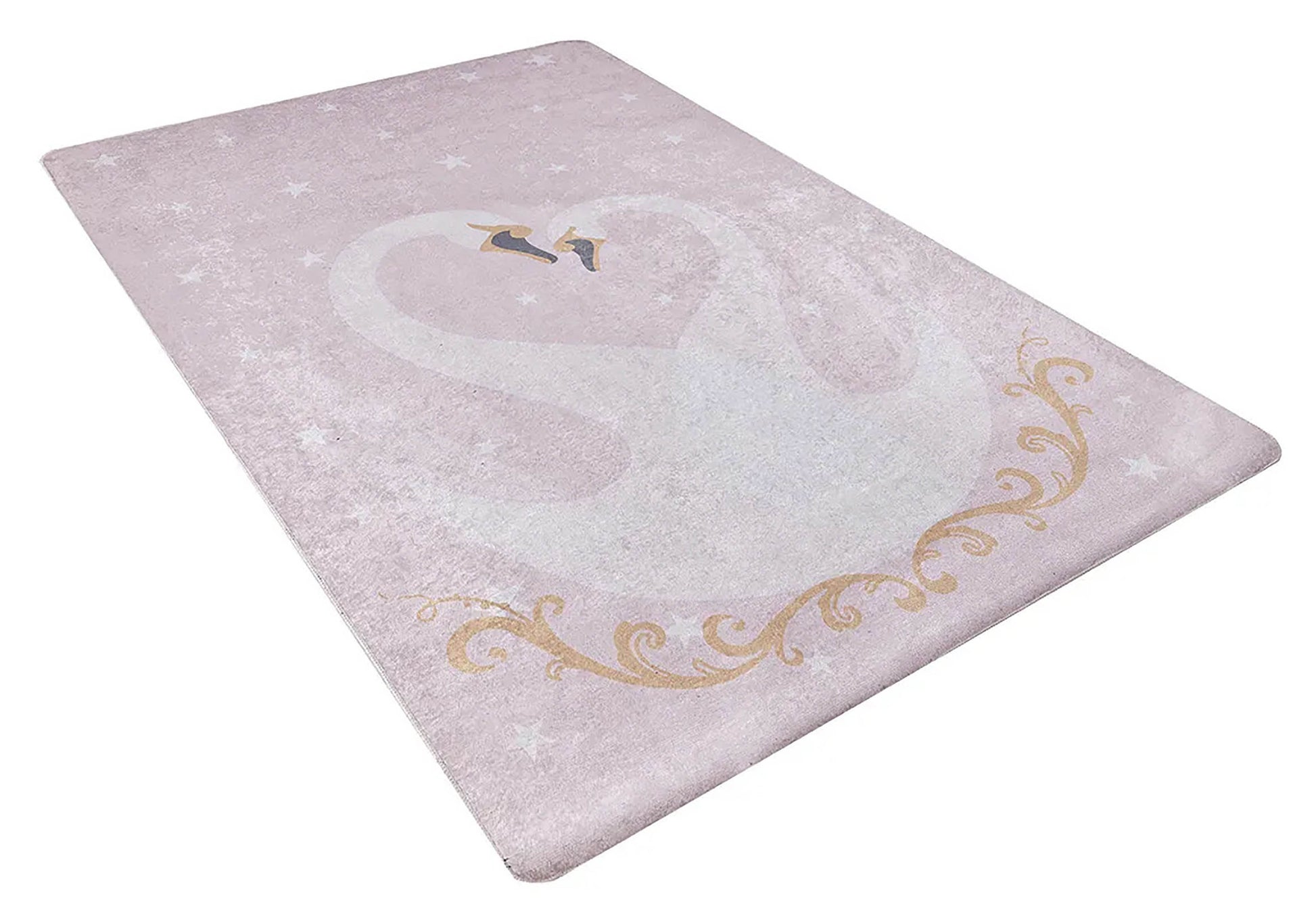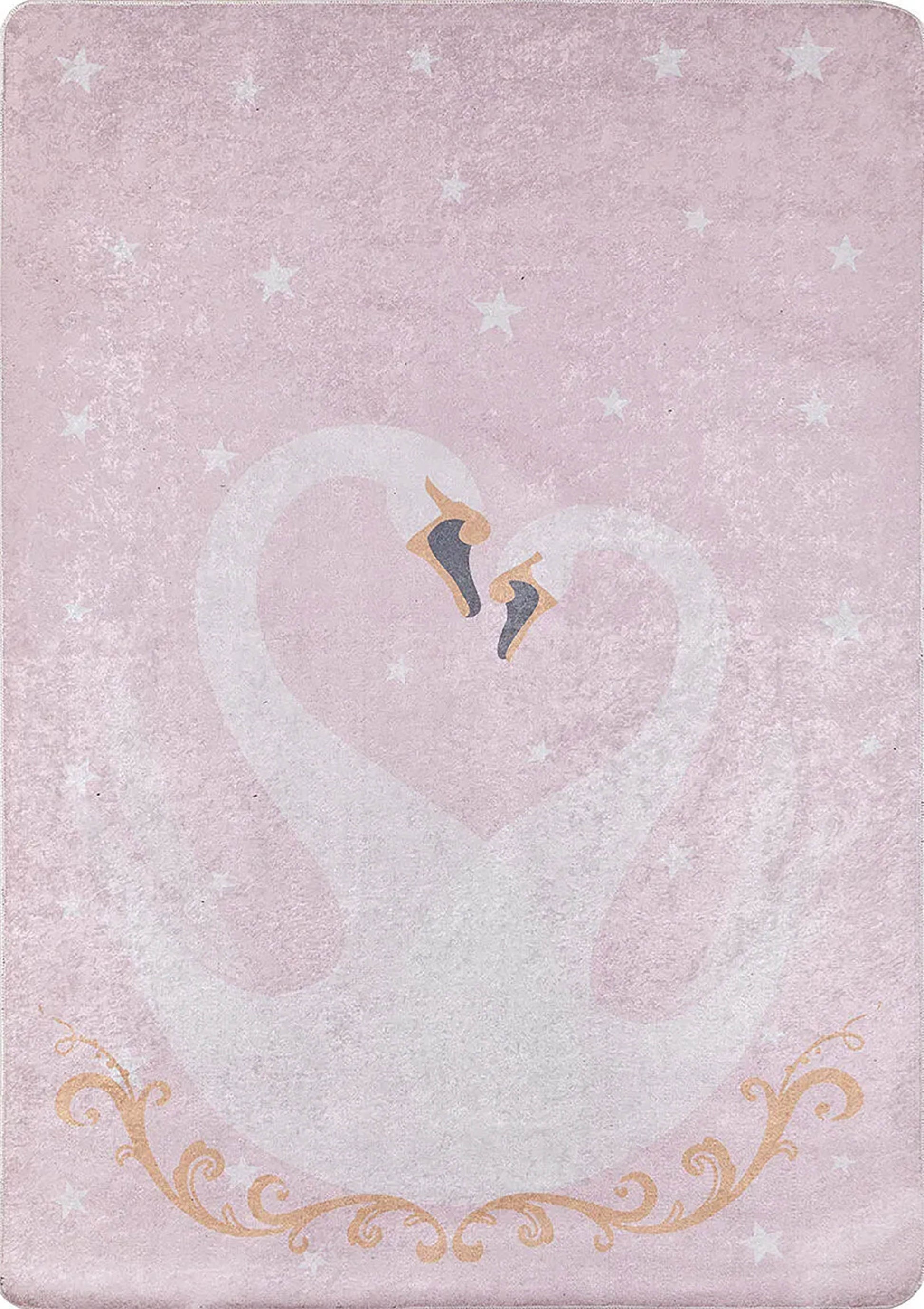 Kız çocuk odalarına romantik ve zarif bir dokunuş katın! Pastel pembe zemin üzerinde, boyunları kalp şeklini alan iki beyaz kuğu figürü ve etrafında yıldızlar bulunur. Özellikle bebek ve kız çocuk odalarında prenses temalı, zarif dekorasyonlar için idealdir. Yumuşak dokusu sayesinde güvenli ve rahat bir oyun/dinlenme alanı sağlar.