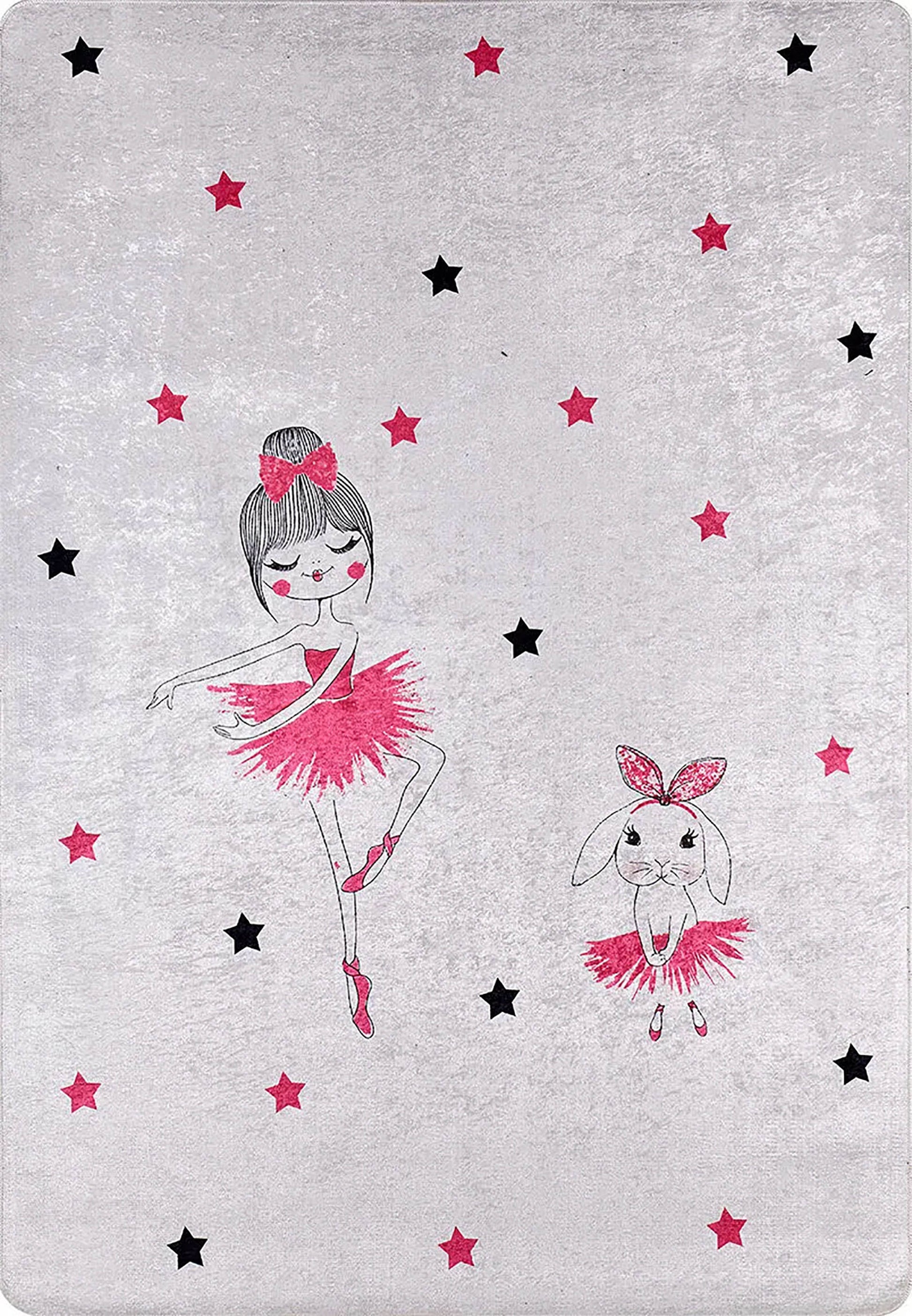 Balerin Kız ve Tavşan Pembe Çocuk Halısı