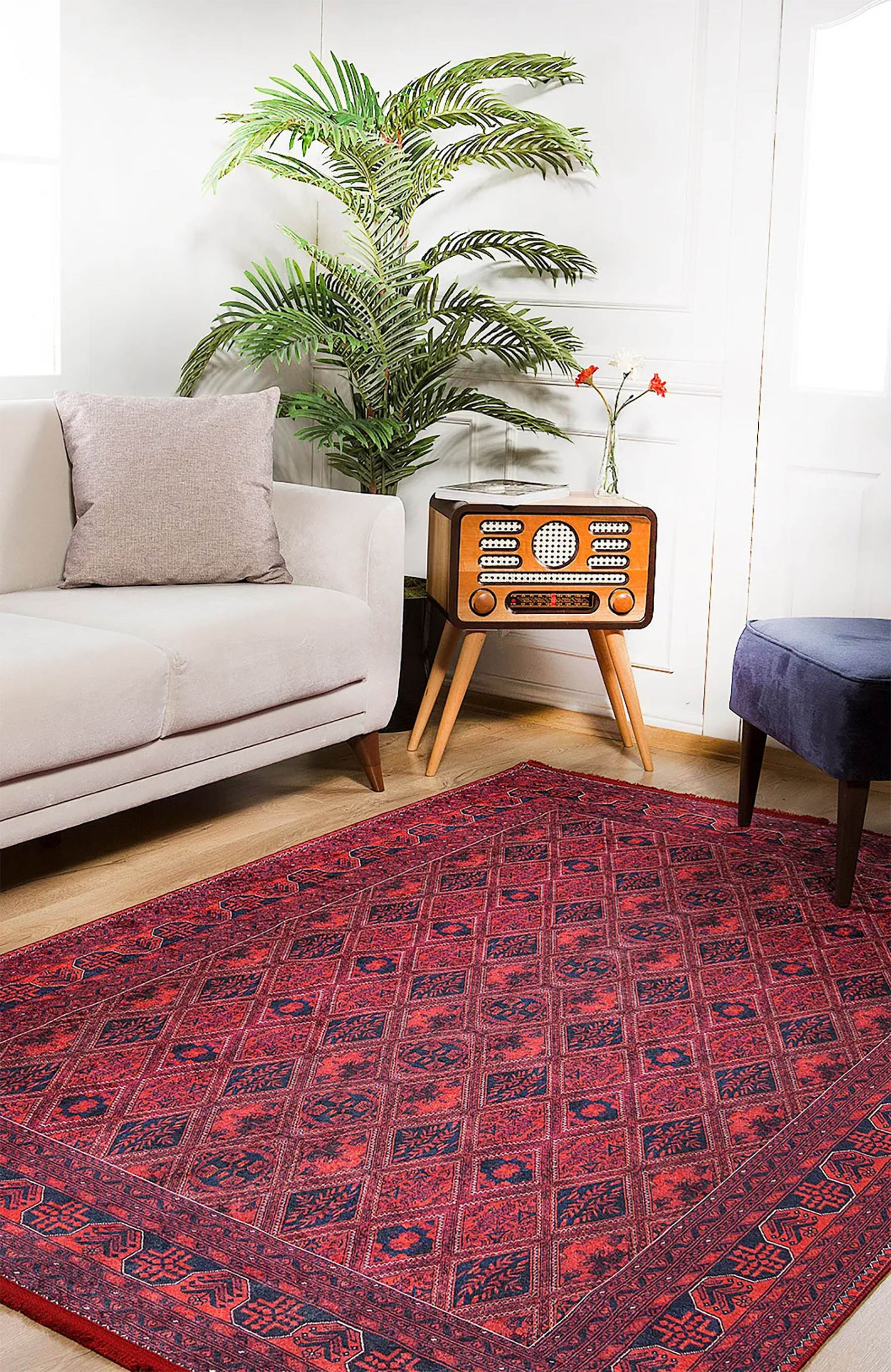 Kırmızı Geleneksel Etnik Baklava Desenli Otantik Halı