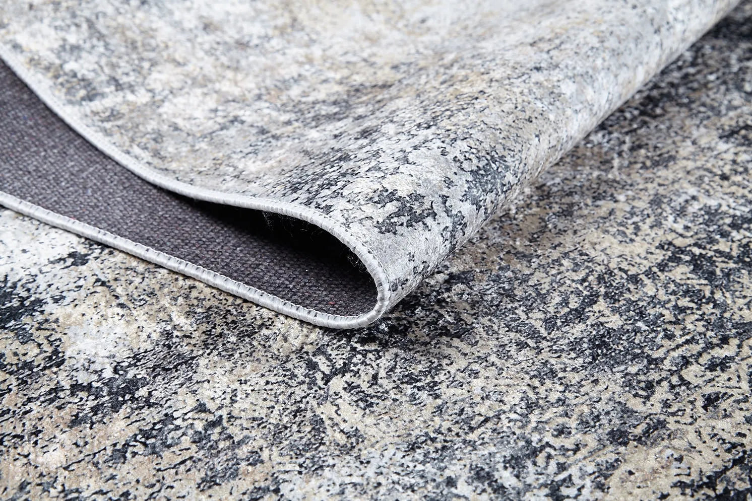 Krem ve Koyu Gri Eskitme Abstre Halı
