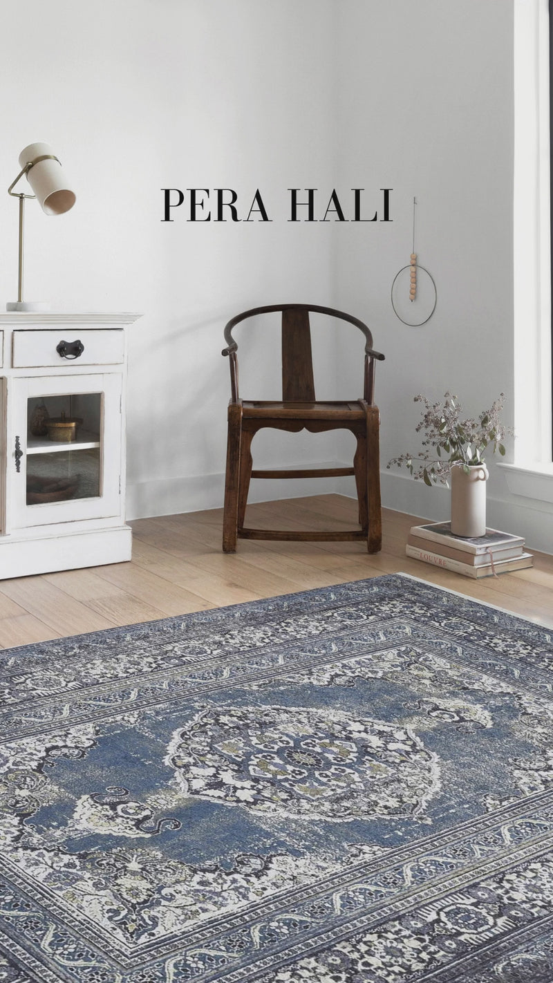 Mavi madalyon geometrik halı, mavi motiflerle tasarlanmış geometrik deseniyle antik tasarım ve vintage tarzı bir araya getirir. Evinizin her alanında kullanılabilecek bu halı, oturma odası, yemek odası, yatak odası, mutfak, ev ofisi, antre, banyo ve koridorlar için mükemmel bir seçimdir.