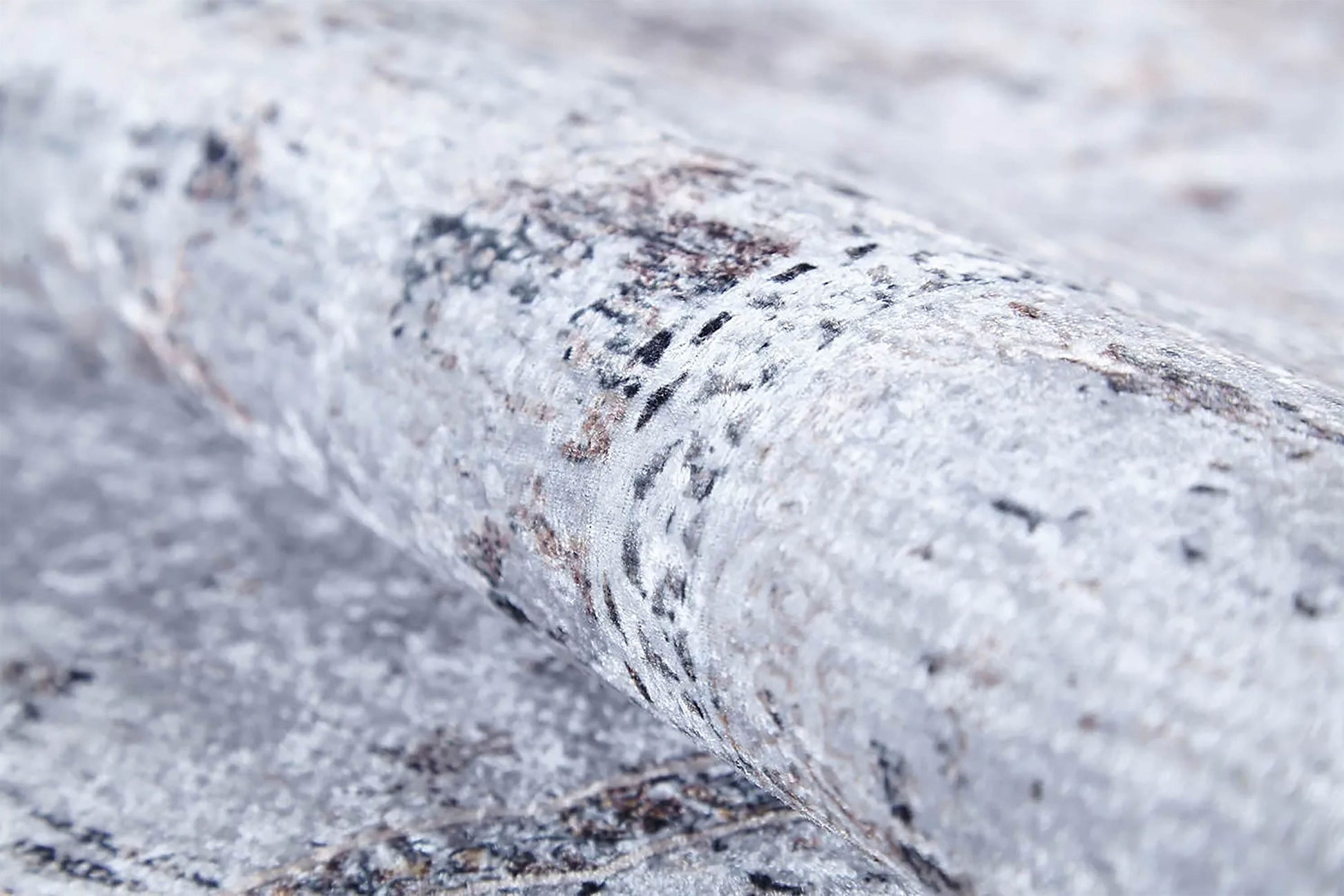 Açık Gri Vintage Desenli Modern Eskitme Efektli Yıkanabilir Halı
