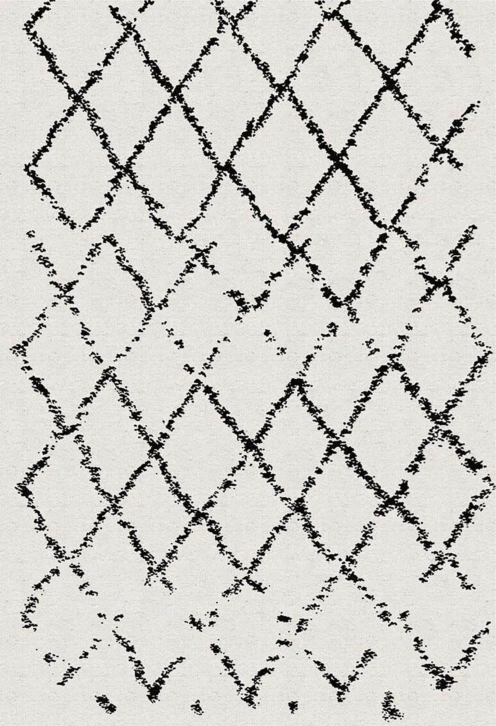 Çağdaş bir dokunuşla mekanınıza sanatsal bir hava katın. Beyaz zemin üzerinde, el çizimi hissi veren kalın, soyut siyah baklava (eşkenar dörtgen) desenleri içerir. Yüksek kontrastlı sade renk paleti, İskandinav, modern ve minimalist tarzı dekorasyonlara mükemmel uyum sağlar. Salon, genç odası veya ofis gibi alanlarda dinamik ve stil sahibi bir zemin çözümü sunar.