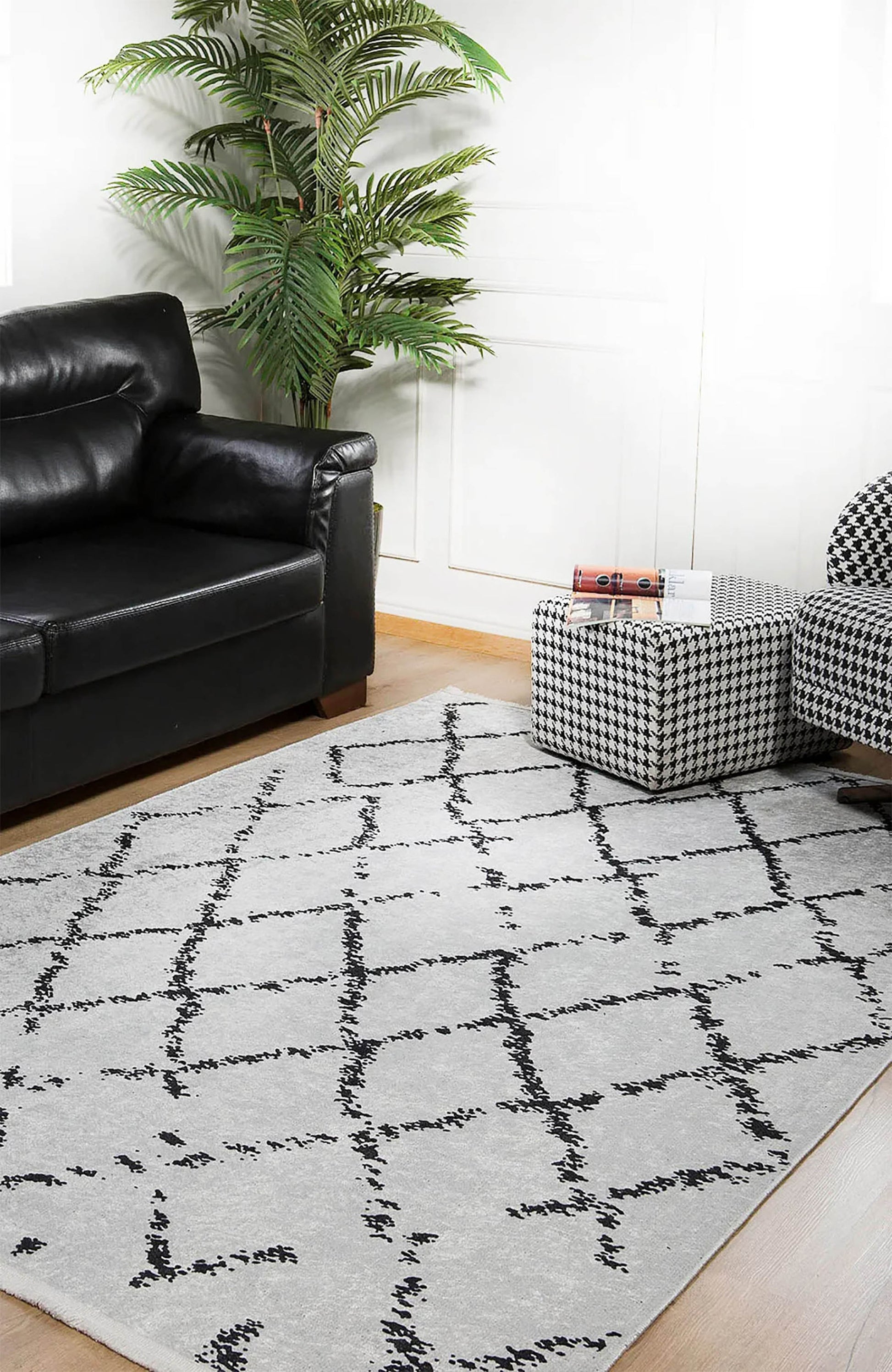 Siyah Beyaz Eskiz Baklava Soyut Geometrik Halı