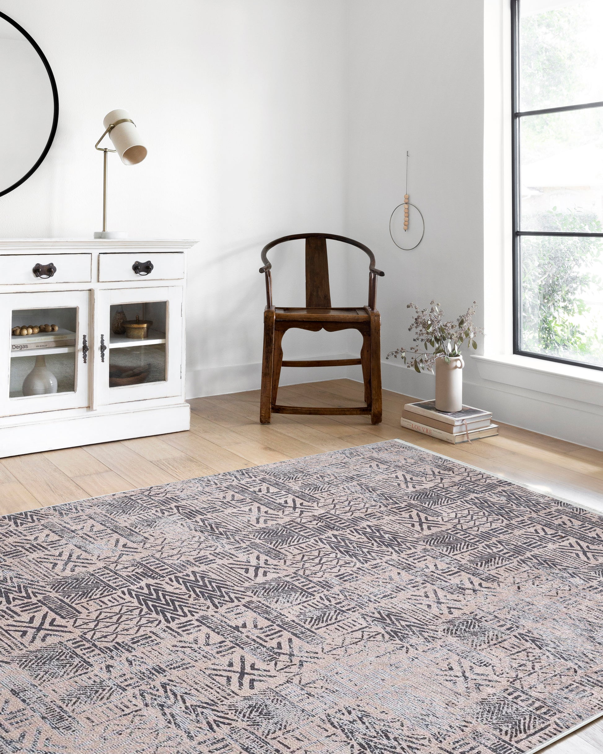 Modern ev dekorasyonuna uyum sağlayan, pratik kullanımlı ve şık halılarımızla tanışın! Bu dijital baskılı, yıkanabilir halı; pudra pembesi ve açık gri zemin üzerinde, koyu gri/siyah tonlardaki etnik ve geometrik desenlerin tekrarıyla oluşan sofistike bir görünüme sahiptir. Kolay temizlenebilir yapısıyla çocuklu ve evcil hayvanlı evler için idealdir. Evinizin havasını anında değiştirin!