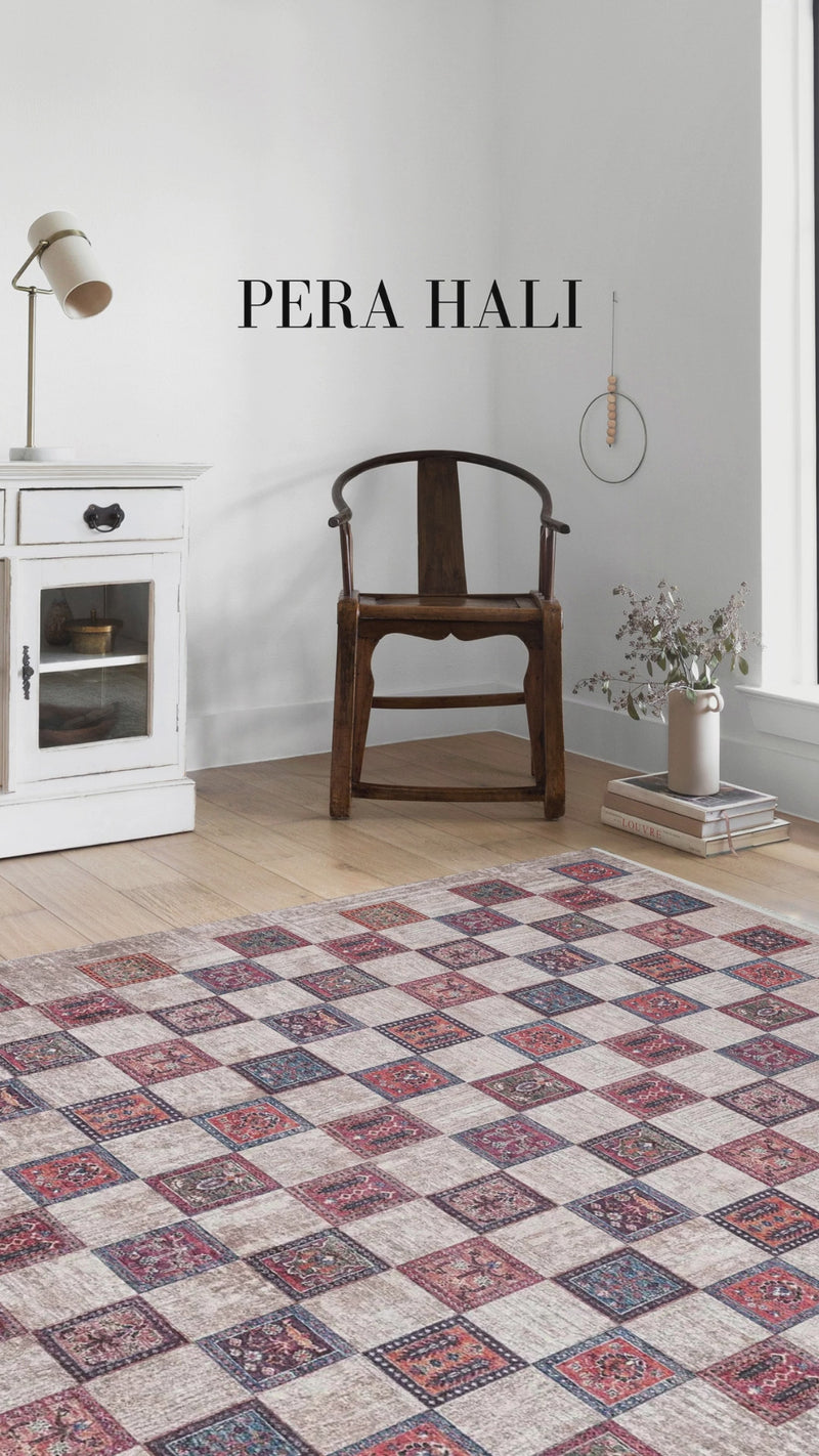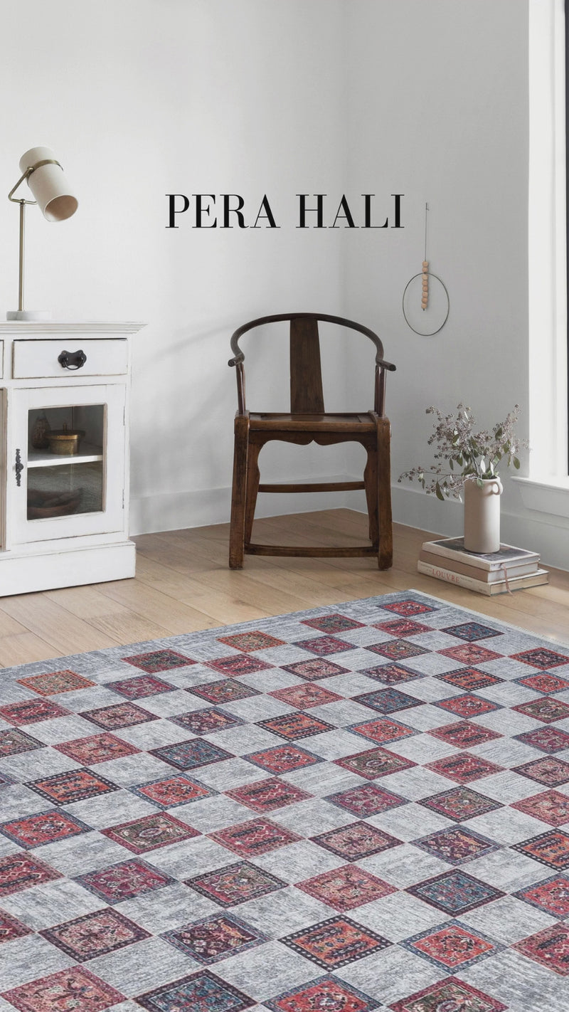 Antik esintiler taşıyan bu özel halı, sıcak bej, pembe ve gri tonlarıyla zarif geometrik desenlere sahiptir. Vintage ve modern tarzı birleştirerek yaşam alanlarınıza sofistike ve lüks bir hava katar.