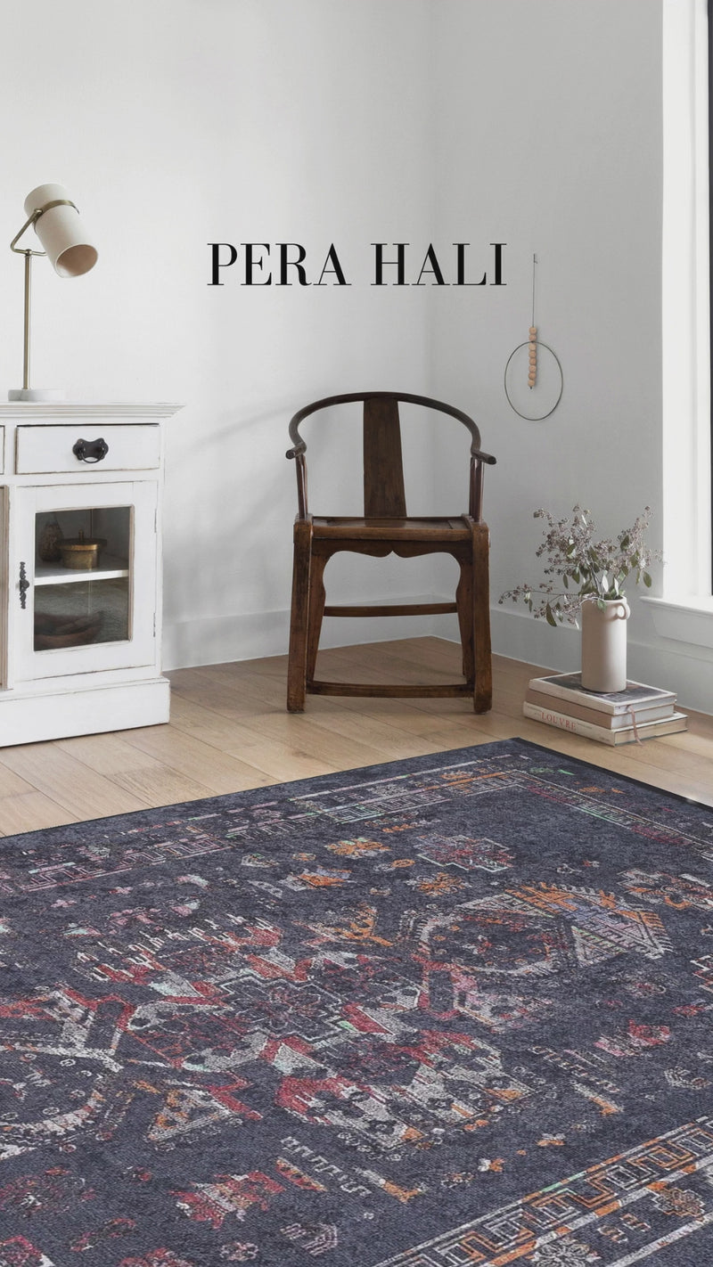 Etkin Desenli Siyah Koyu Gri Halı, antik solmuş siyah ve gri tonlarında bir halıdır. Gri ve turuncu motifler ile tribal etnik desenlerden ilham alınarak tasarlanmıştır. Odanıza hem zarafet hem de rahatlık katacak bu halı, her alan için mükemmel bir seçenek sunar. Herhangi bir odayı özel hale getirecek bu halıyı evinizin her köşesinde kullanabilirsiniz.