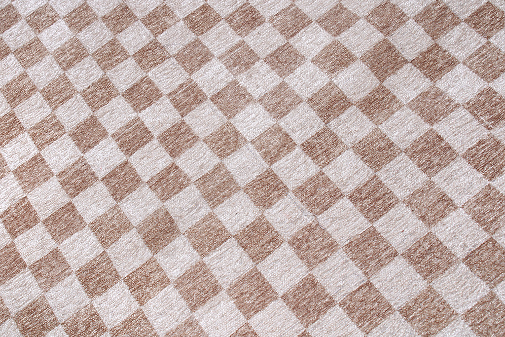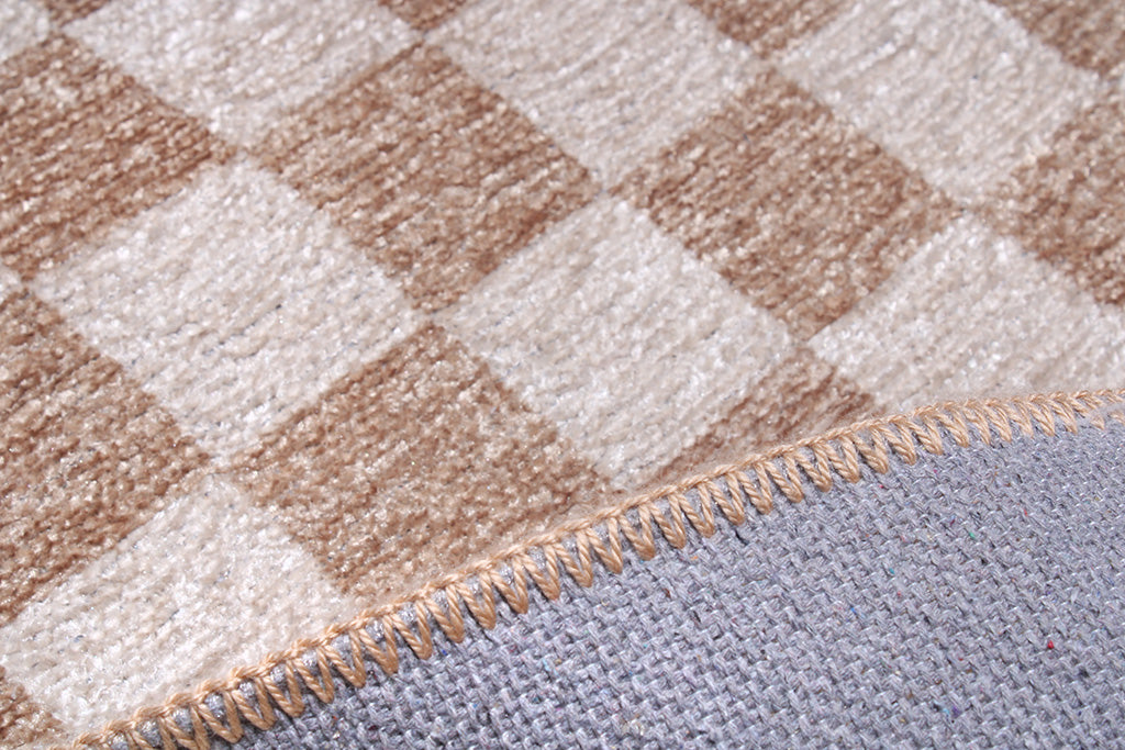 Bej Beyaz Pamuk Polyester Modern Geometrik Dama Desenli Yıkanabilir Halı