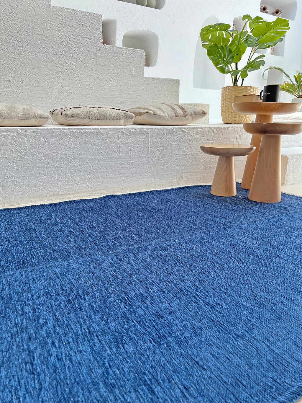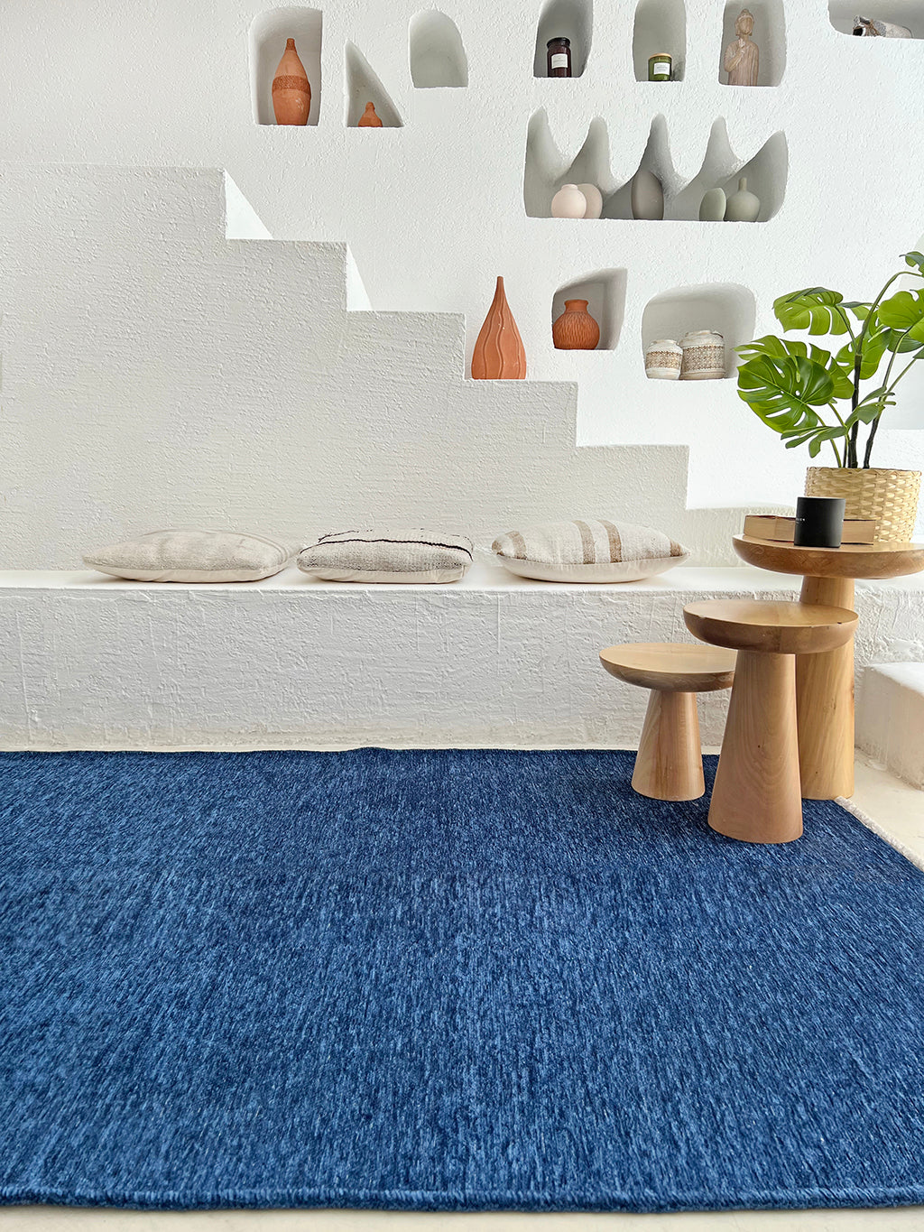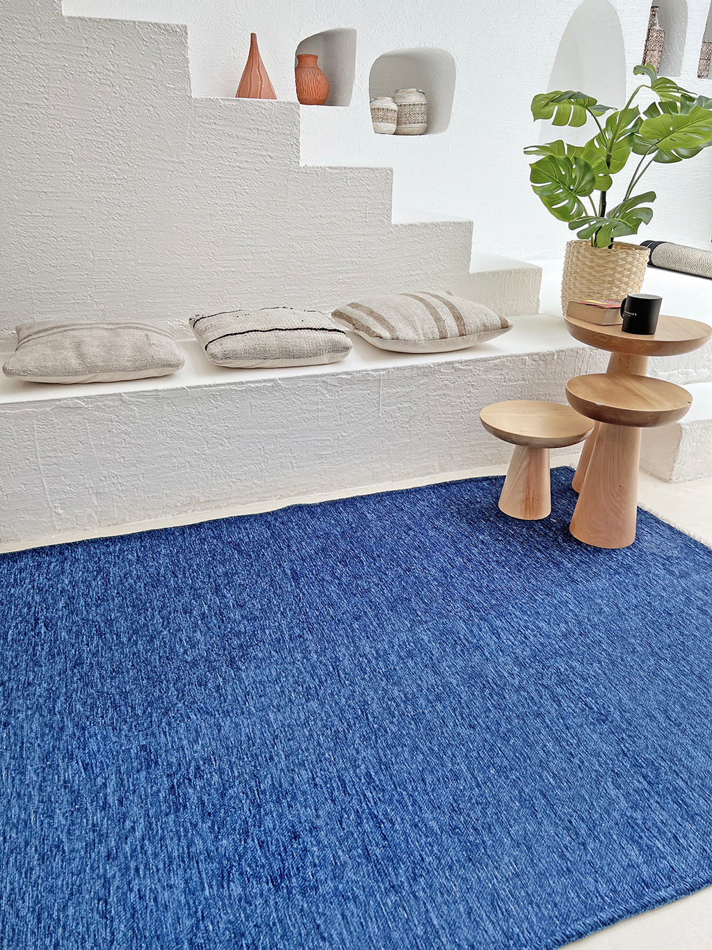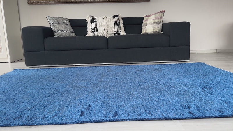 Mavi Pamuk Polyester Modern Düz Yıkanabilir Antibakteriyel Halı