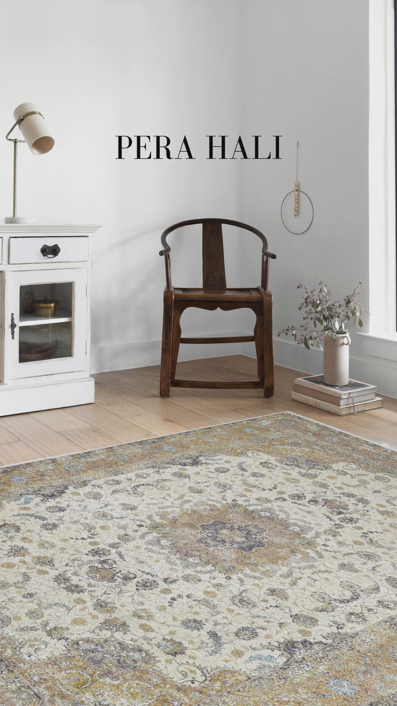 Çiçek desenli geleneksel vintage halı, oryantal bir atmosfer ve vintage bir tarz sunar. Sarı ve bej renkler, bu antika tarzı vurgularken solgun tasarımı daha sakin ve yumuşak bir görünüm sağlar. Yenilikçi baskı işlemiyle el dokuması etkisi veren tasarım, her bir düğümü yumuşak bir zeminde detaylı bir şekilde yansıtarak dokulu bir etki oluşturur.