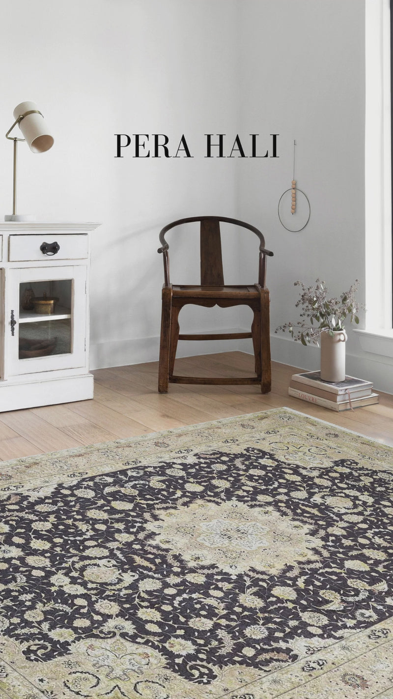 Çiçekli geleneksel vintage halı, oryantal bir atmosfer ve vintage bir tarz sunar. Bej ve siyah renkler, bu antika tarzı vurgularken solgun tasarımı daha sakin ve yumuşak bir görünüm sağlar. Yenilikçi baskı işlemiyle el dokuması etkisi veren tasarım, her bir düğümü yumuşak bir zeminde detaylı bir şekilde yansıtarak dokulu bir etki oluşturur.