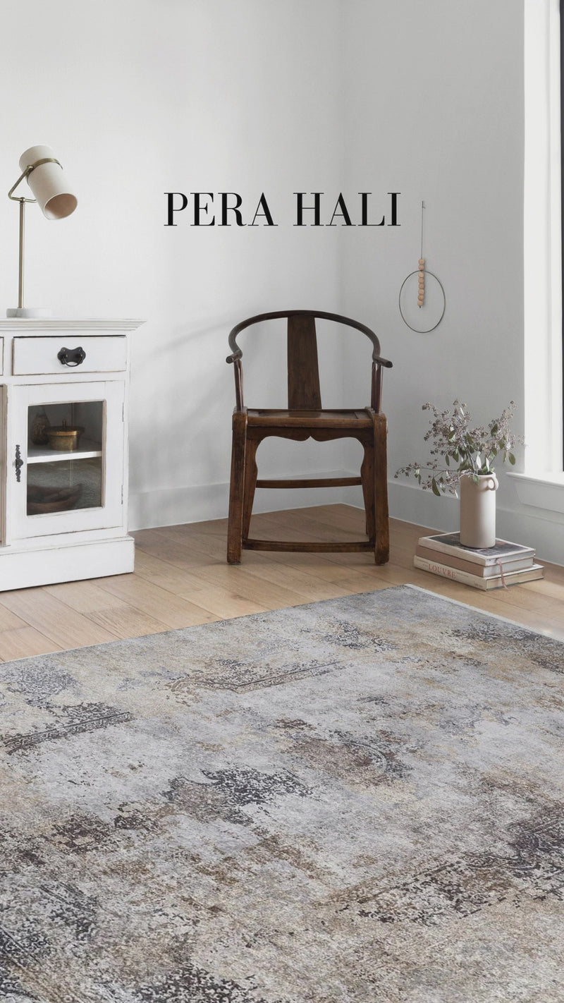 Çamaşır makinesinde yıkanabilir özel dokusu sayesinde kolay temizlik sunan bu modern halı, açık krem, bej ve kahve tonlardaki eskitme zemin üzerinde silik klasik desenlerle yaşam alanınıza aydınlık ve zarif bir hava katacak. Kaymaz tabanı güvenli kullanım sağlarken, canlı renkleri uzun süre korur.