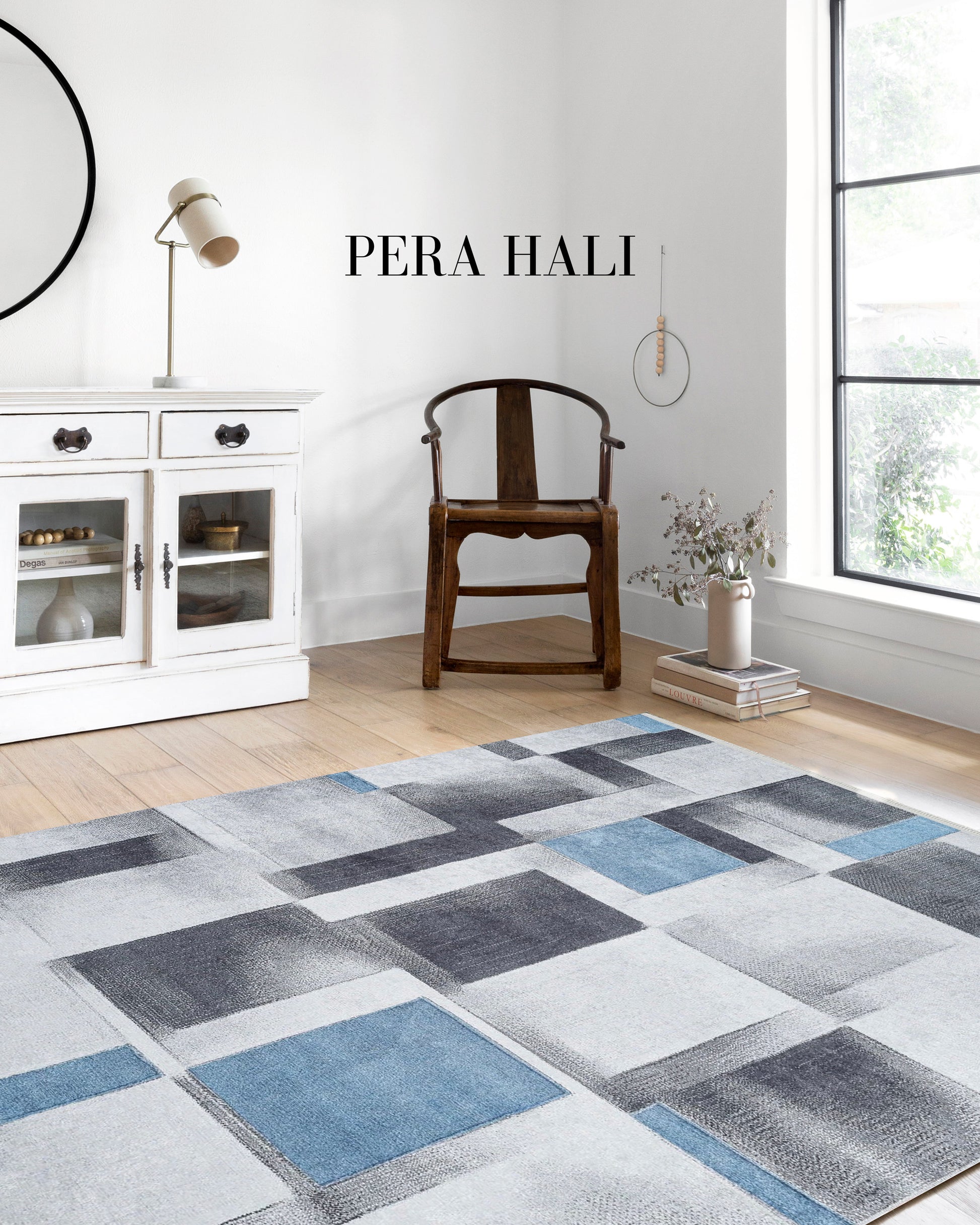 Gri, beyaz ve açık mavi tonlarında, soyut ve modern bir blok desene sahiptir. Bu tasarım, odaya çağdaş ve dinamik bir hava katarak hemen dikkat çeker. Farklı renk yoğunlukları ile derinlik sağlar. Yumuşak yüzeyi ve kaymaz tabanı sayesinde salon, genç odası veya ofis gibi modern alanlar için konforlu ve güvenli bir zemin sunar.