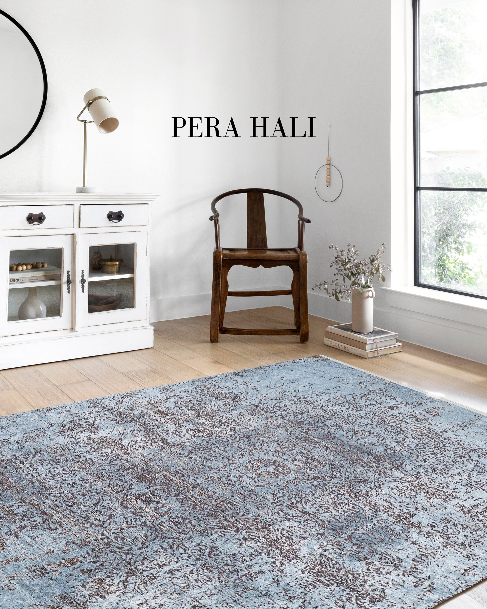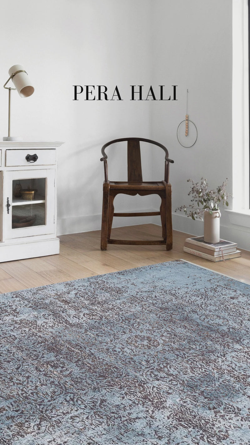 Mavi tonlarında, eskitme (vintage) merkezi ve geleneksel motifli kalın bordürleriyle sofistike bir tasarımdır. Bu halı mekana zengin bir doku ve hava katar. Yumuşak yüzeyi ve kaymaz tabanı sayesinde tüm yaşam alanlarında konforlu ve güvenli bir zemin sunar.