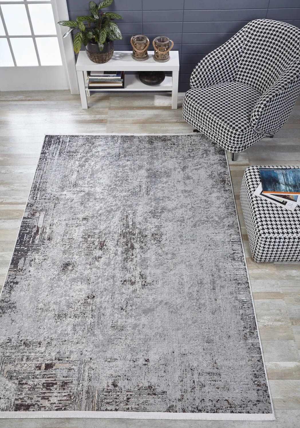 Çamaşır makinesinde yıkanabilir özel dokusu sayesinde kolay temizlik sunan bu modern halı, açık gri ve eskitme (distressed) deseniyle yaşam alanınıza minimalist ve şık bir hava katacak. Kaymaz tabanı güvenli kullanım sağlarken, canlı renkleri uzun süre korur.
