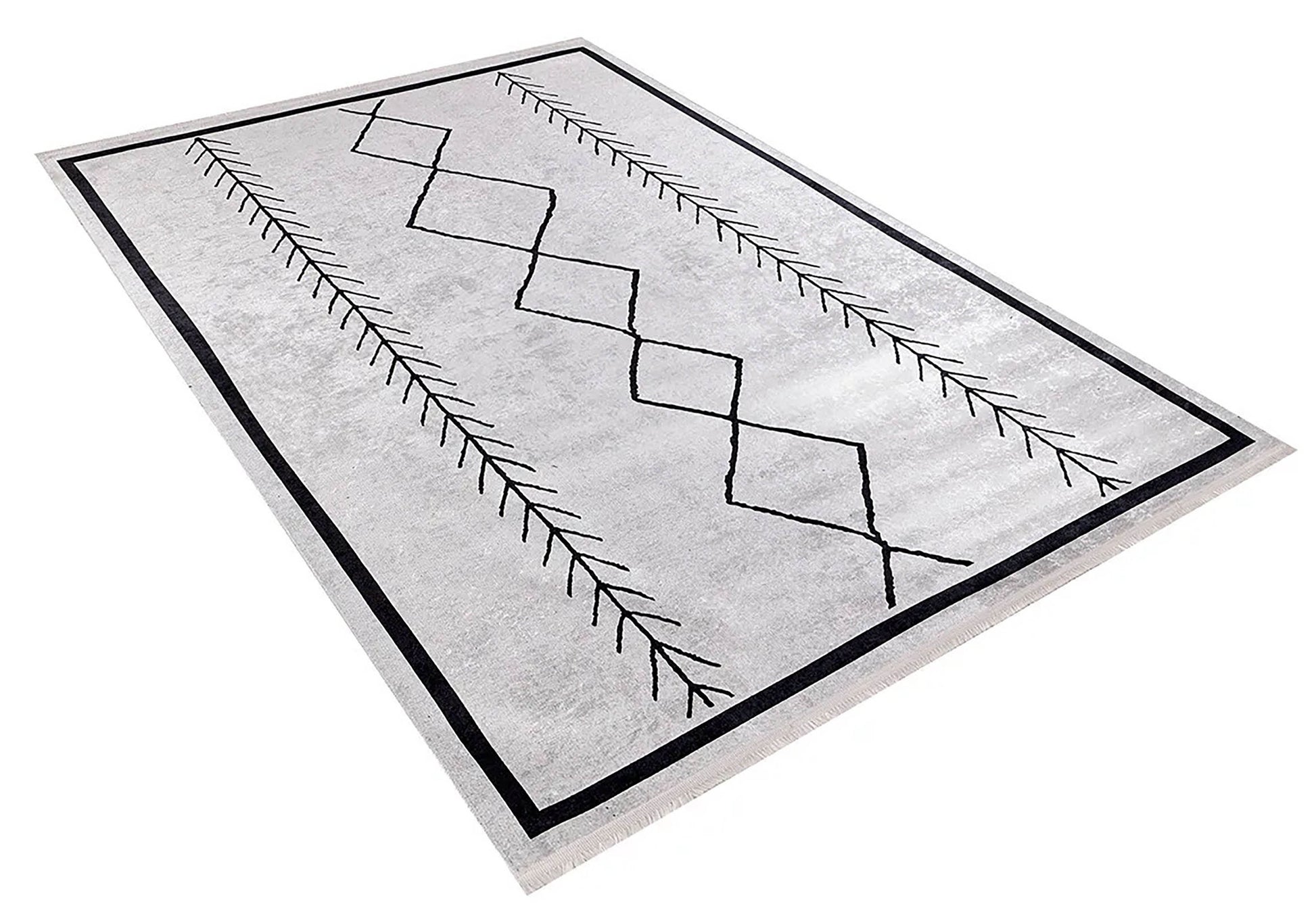 Beyaz Gri Bohem Geometrik İskandinav Desenli Salon Halısı