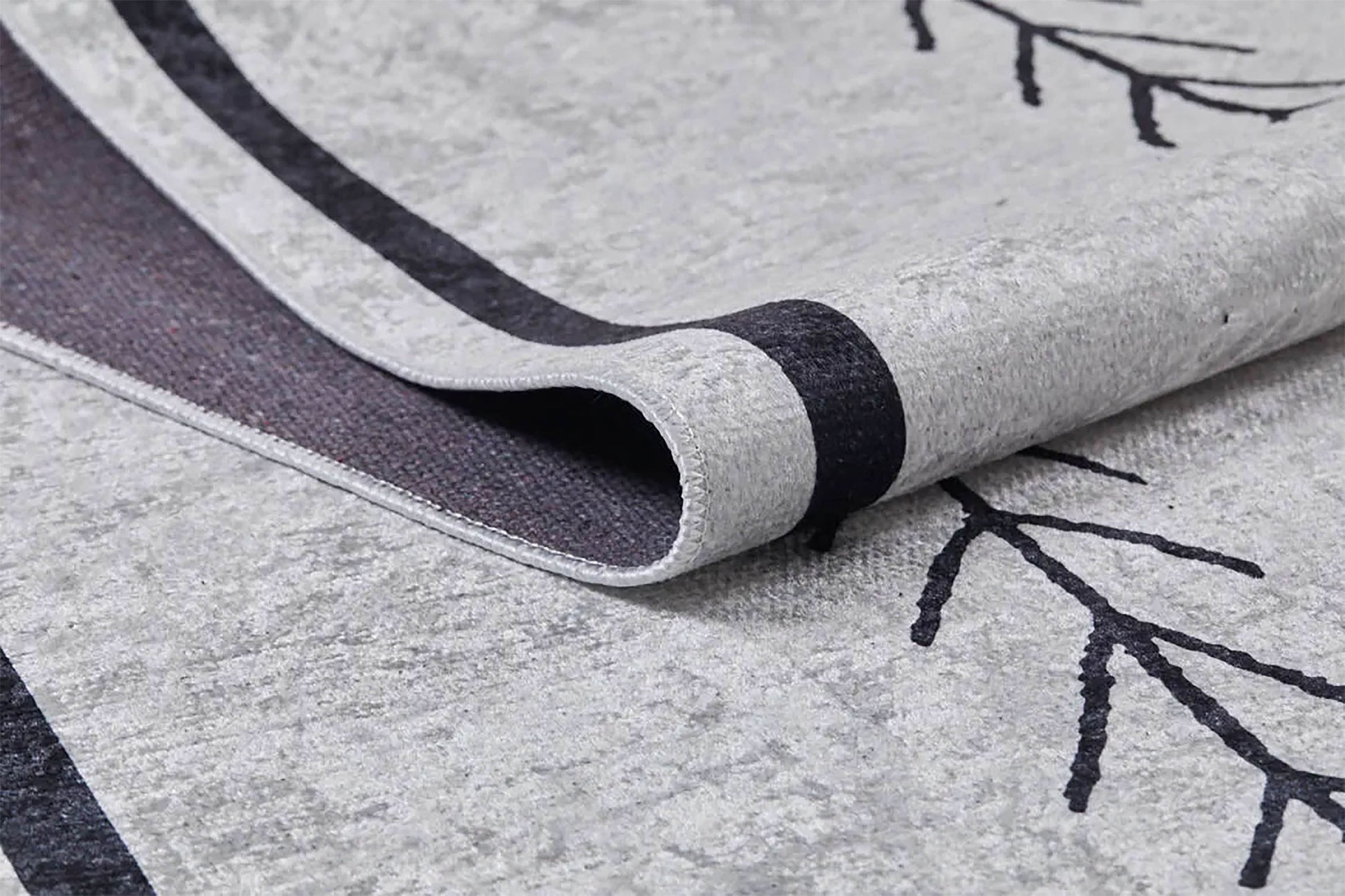Sade renklerle modern, geometrik ve bohem bir atmosfer yaratın. Açık gri zemin üzerinde, ortada dikey baklava (eşkenar dörtgen) ve yanlarda ok ucu (veya tüy) motifleri gibi sade ve grafiksel etnik desenlere sahiptir. Nötr renkleri sayesinde İskandinav, modern, bohem veya rustik tarzı dekorasyonlara kolayca uyum sağlar. Salon, yatak odası, genç odası veya ofis gibi ferah mekanlarda çağdaş ve şık bir görünüm sunar.