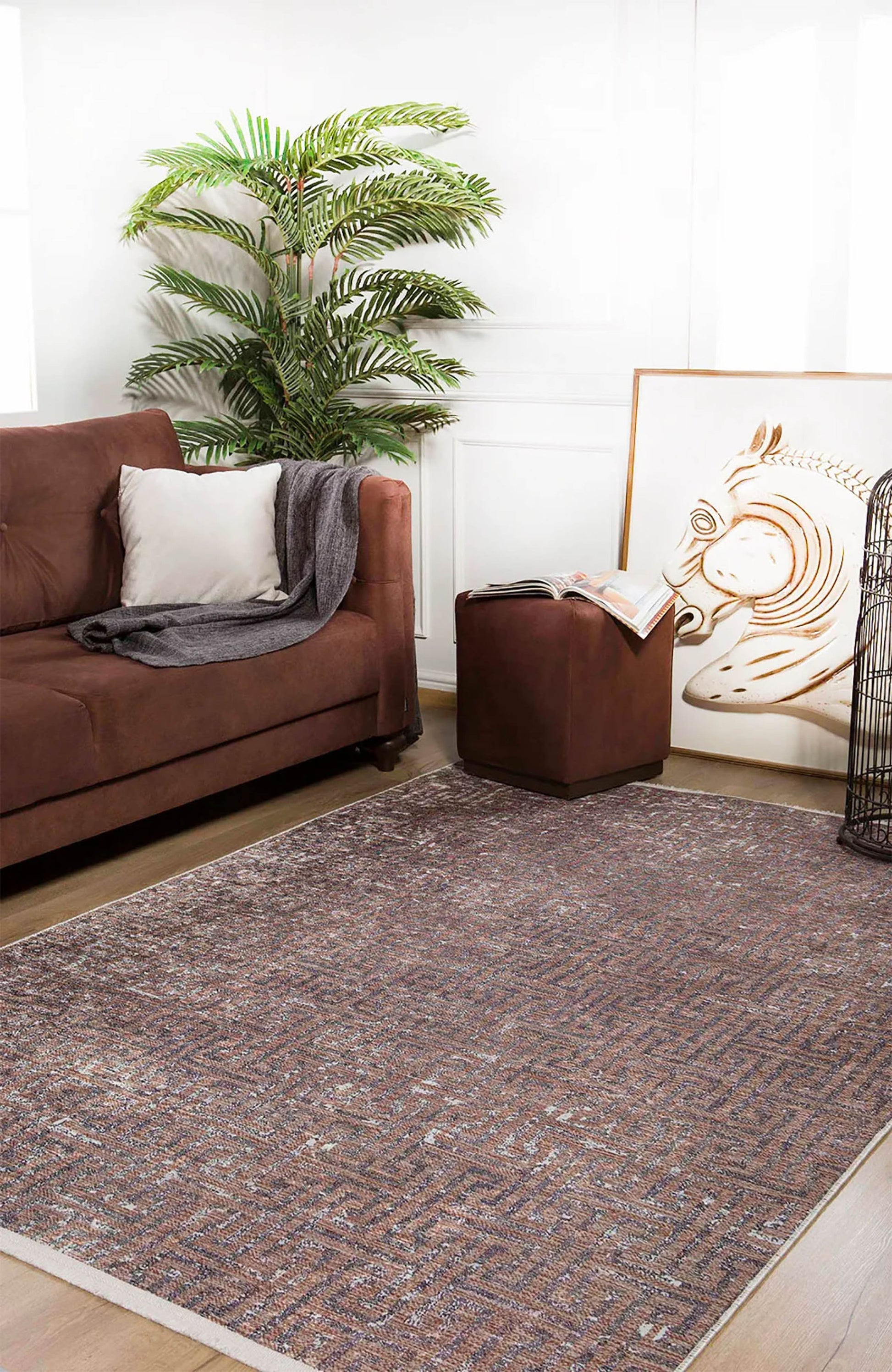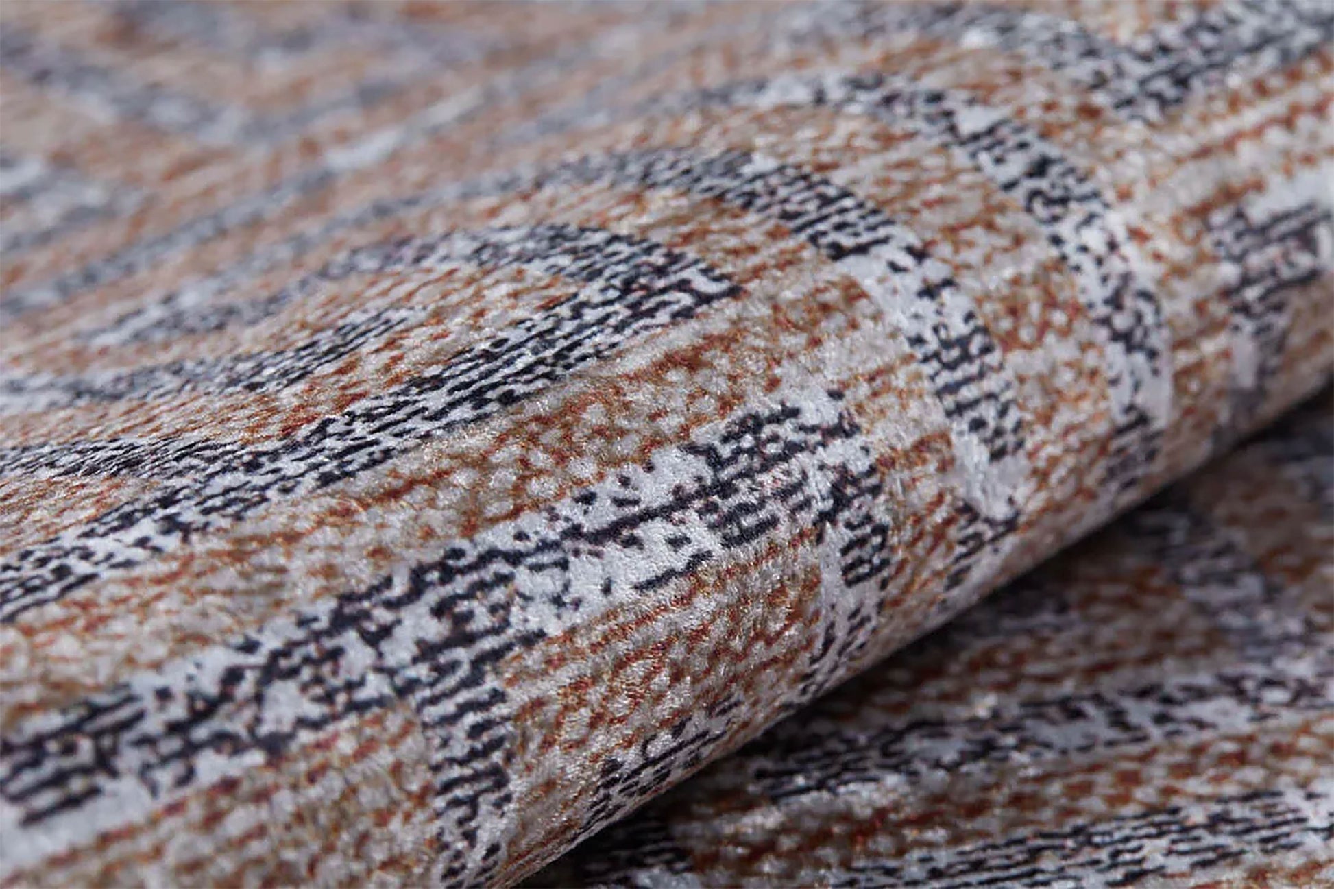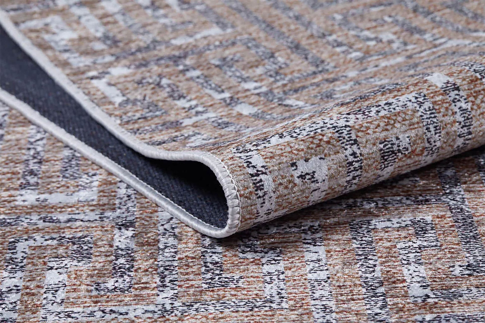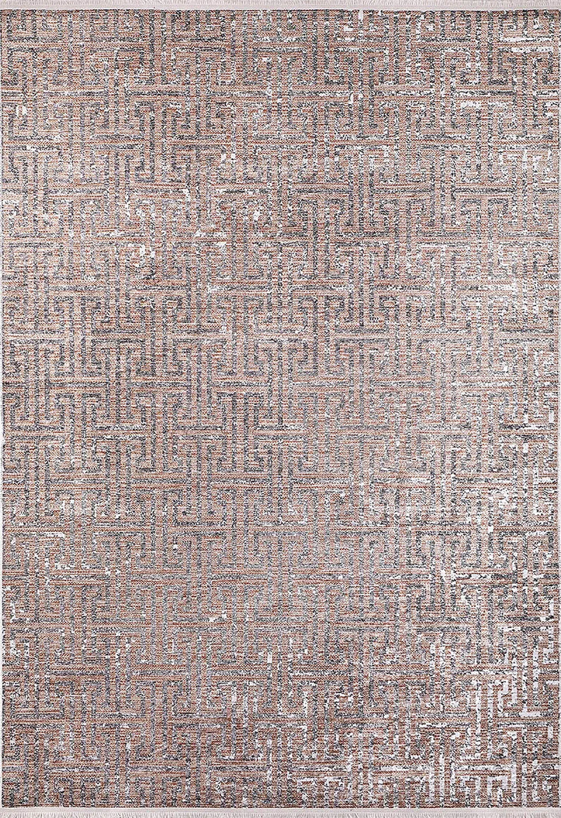 Krem, bej, kahverengi ve açık gri tonlarında, eskitme görünümlü modern halıdır. Yüzeyi, labirenti andıran ince çizgilerle oluşturulmuş karmaşık, geometrik bir desenle kaplıdır. Nötr renkleri ve hareketli dokusuyla modern ve sofistike dekorasyonlara derinlik ve şık bir detay katar. Salon, yatak odası veya koridorlar için zamansız bir seçimdir.