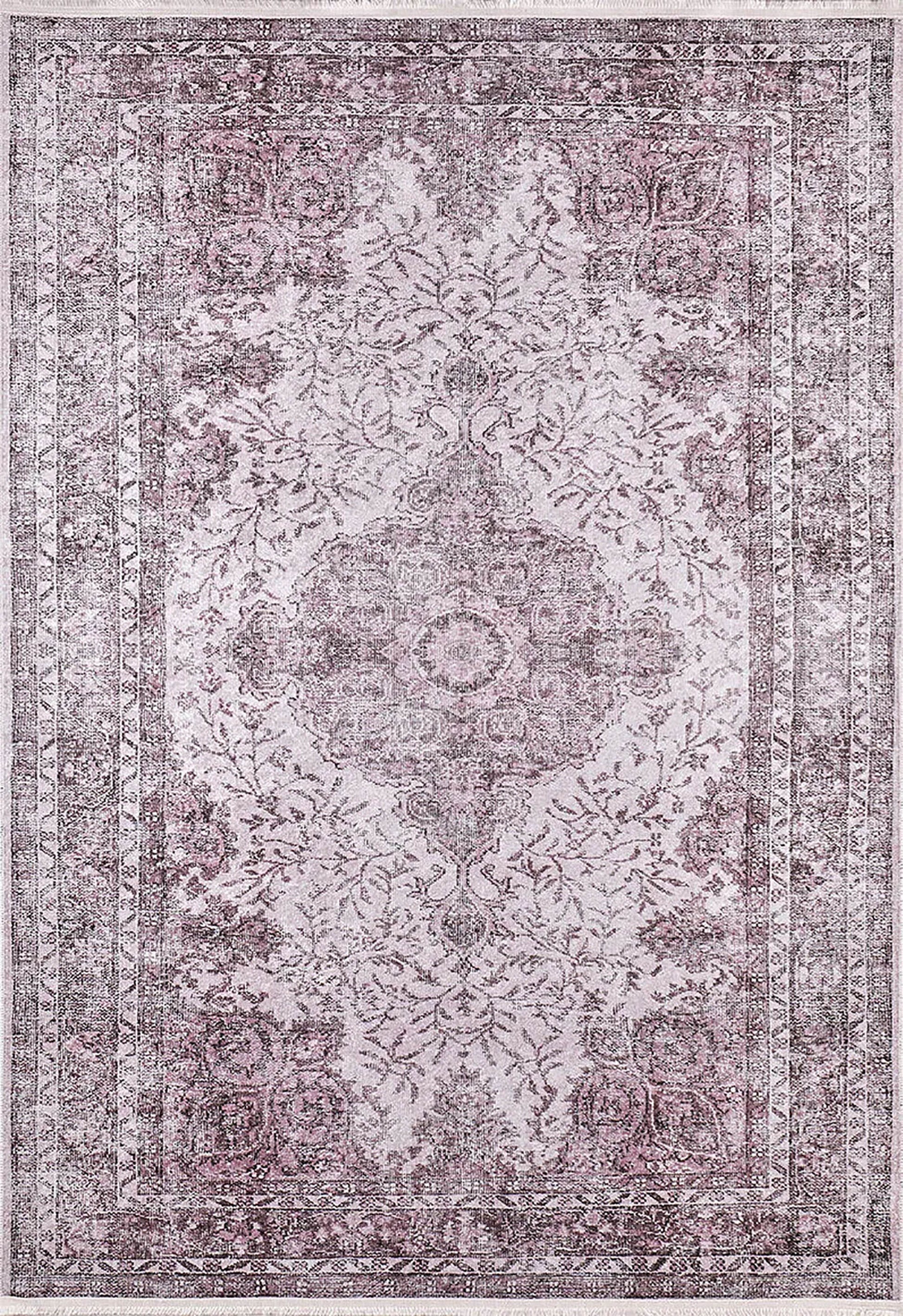Zarafeti ve yumuşak renkleriyle mekanınıza huzur veren vintage bir dokunuş. Soluk pembe/lila tonlarında klasik (madalyonlu) desen ve floral motifler içerir. Eskitme (distressed) bitişi, halıya zamansız ve otantik bir görünüm kazandırır. Yatak odaları, salonlar ve oturma odaları gibi alanlara dinginlik ve zarafet katmak için idealdir. Shabby chic, vintage, klasik ve İskandinav dekorasyonlarla harika uyum sağlar.