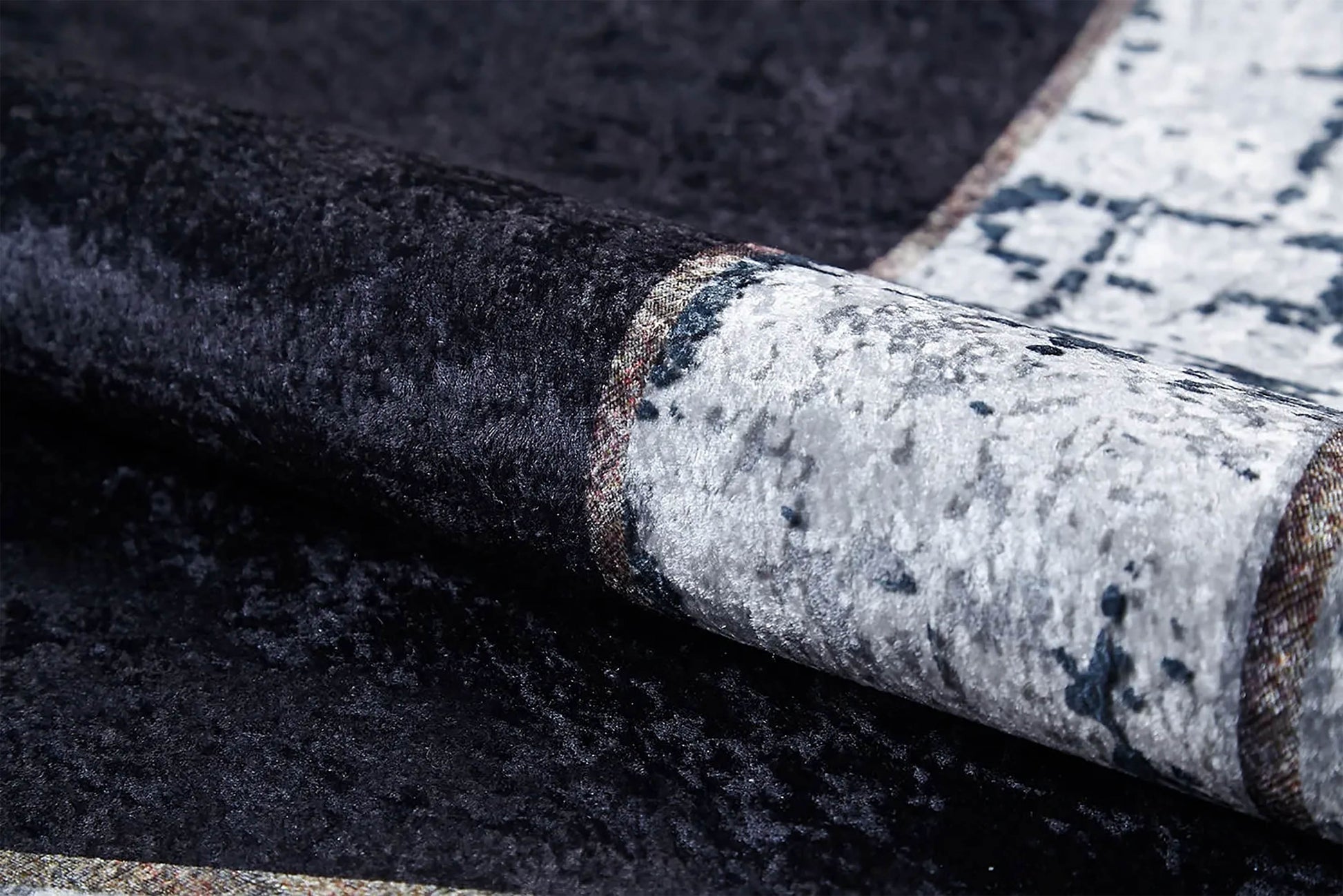 Koyu füme merkez paneli ve dikkat çekici, kontrast yaratan açık renkli bordürleriyle modern bir şıklık sunar. Bordürdeki soyut ve eskitme (vintage) desenler, halının sade merkezine dinamik bir dokunuş katar. Yumuşak dokusu, odaya zengin bir his verirken, kaymaz taban özelliği sayesinde güvenli ve pratik bir kullanım sağlar. Geniş salonlar, oturma odaları ve modern ofisler için ideal, güçlü bir dekorasyon parçasıdır.