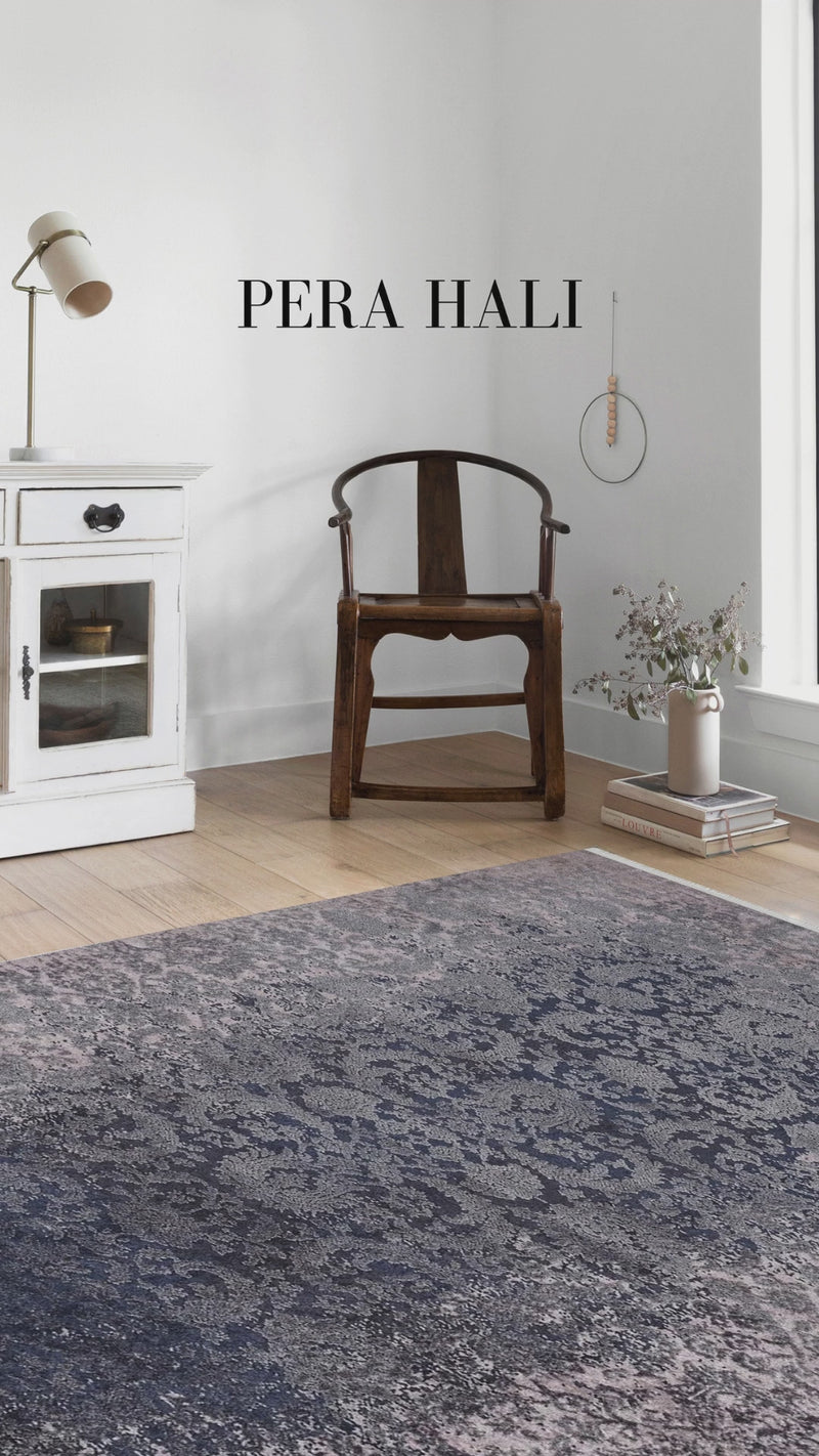 Bu zarif çiçek desenli vintage geometrik modern halı, mekâna oryantal bir hava ve klasik bir stil katıyor. Lacivert ve açık pembe tonlarıyla vurgulanan antika tarzı, soluk deseni sayesinde daha sakin ve yumuşak bir görünüm sunuyor. Yenilikçi baskı teknolojisi ile üretilen el dokuması efekti, her düğümü yumuşak bir yüzey üzerinde mükemmel şekilde yansıtıyor.