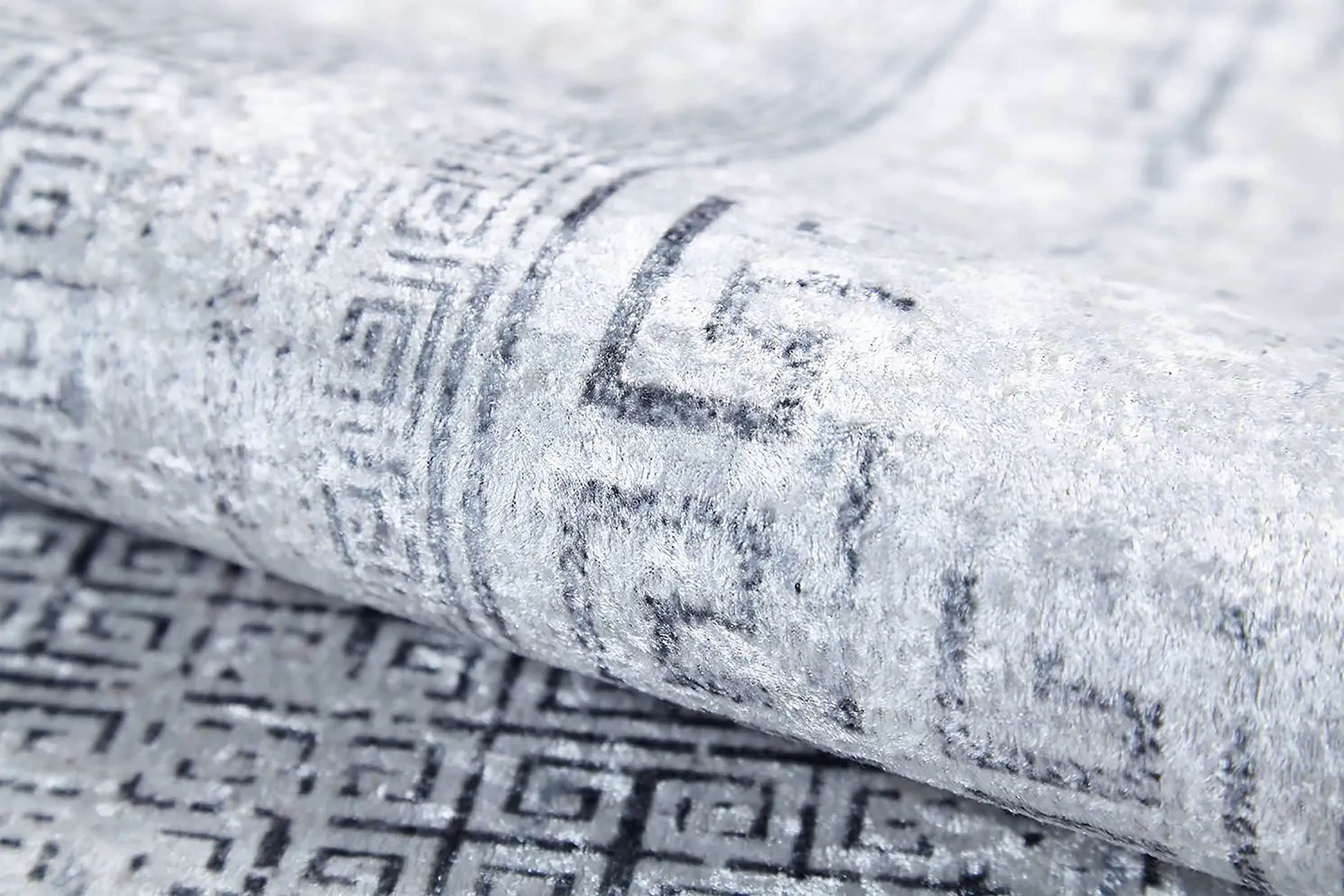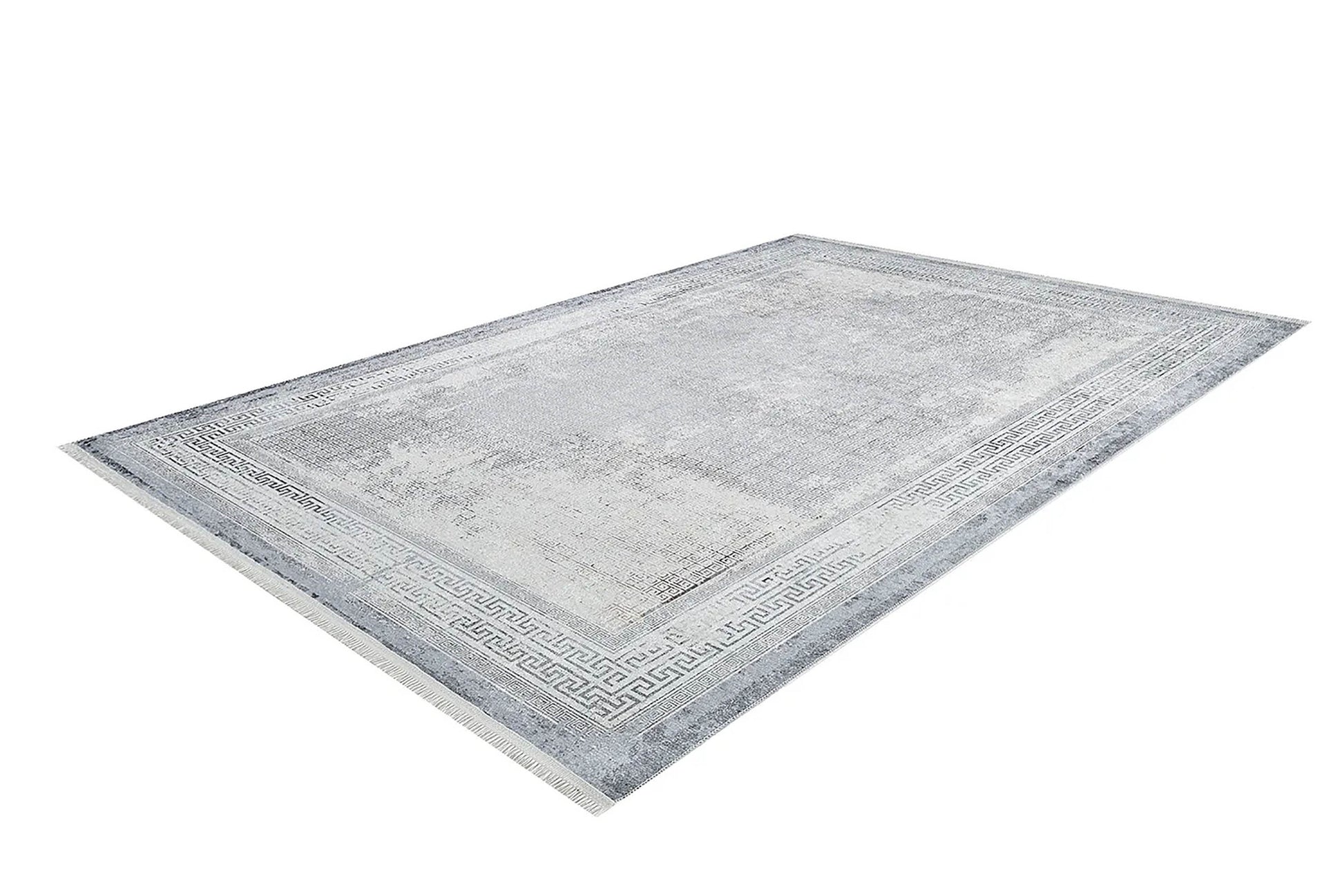 Neredeyse beyaz zemin ve yumuşak gri dokunuşlarla aydınlık ve ferah bir görünüm sunar. Halının merkezindeki hafif kafes (geometrik) deseni ve etrafındaki zarif Yunan Anahtar motifli bordürü, minimalist şıklık ile geleneksel zarafeti birleştirir. Tüm yüzeydeki hafif eskitme (vintage) efekti, tasarıma incelik katar. Yumuşak dokusu ve kaymaz tabanı sayesinde, aydınlık mekanlar, yatak odaları ve modern salonlar için mükemmel, güvenli bir zemin çözümüdür.