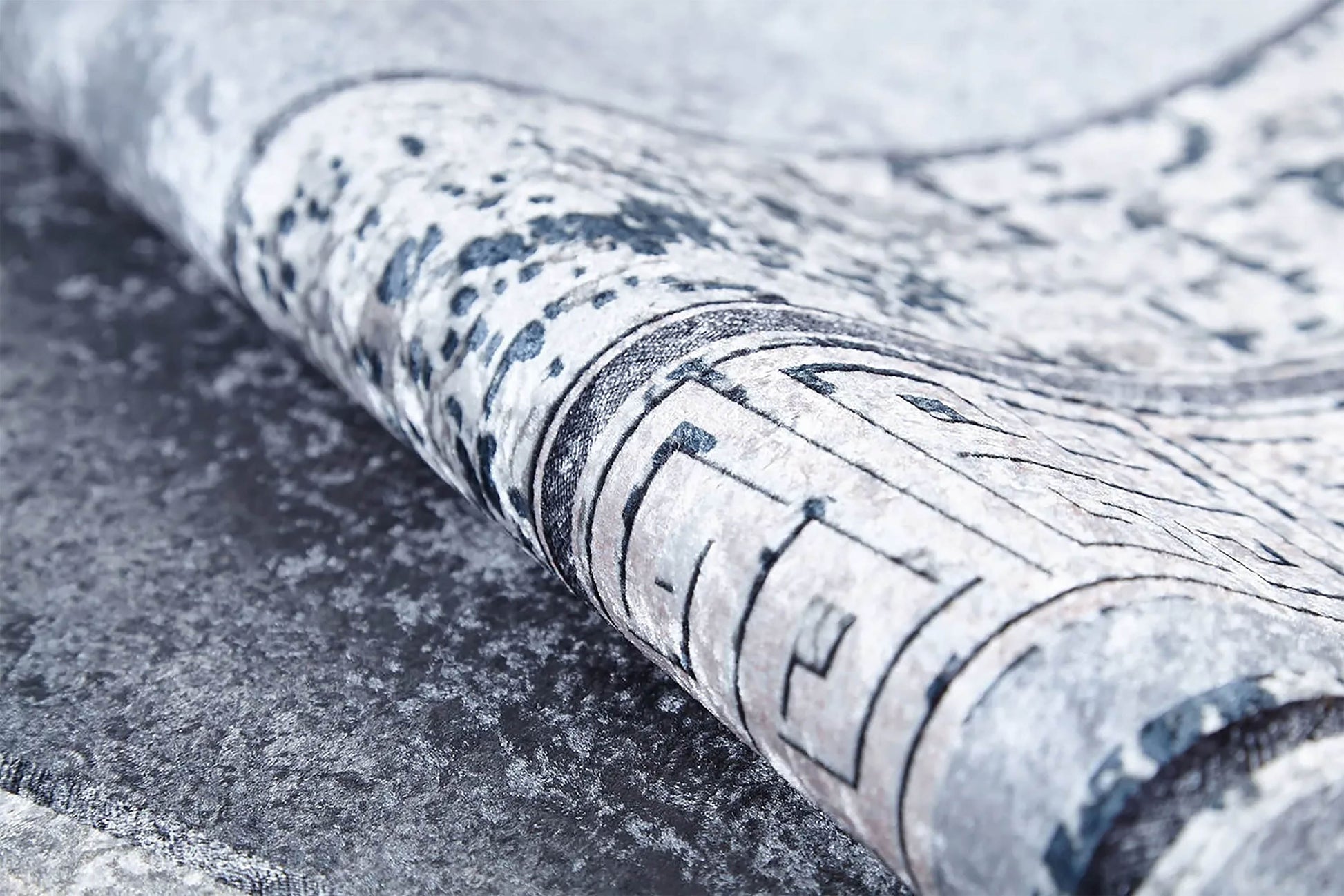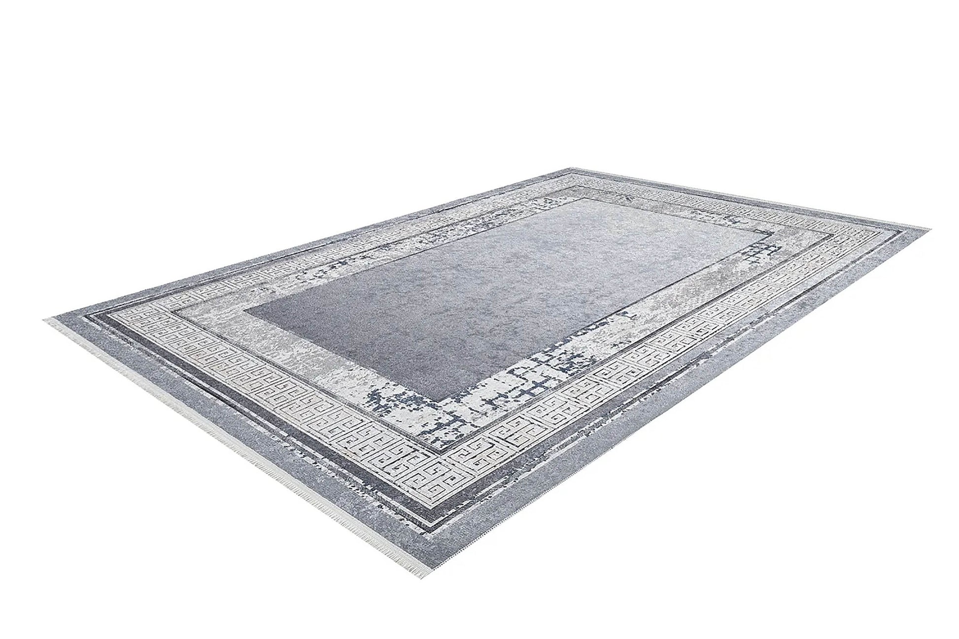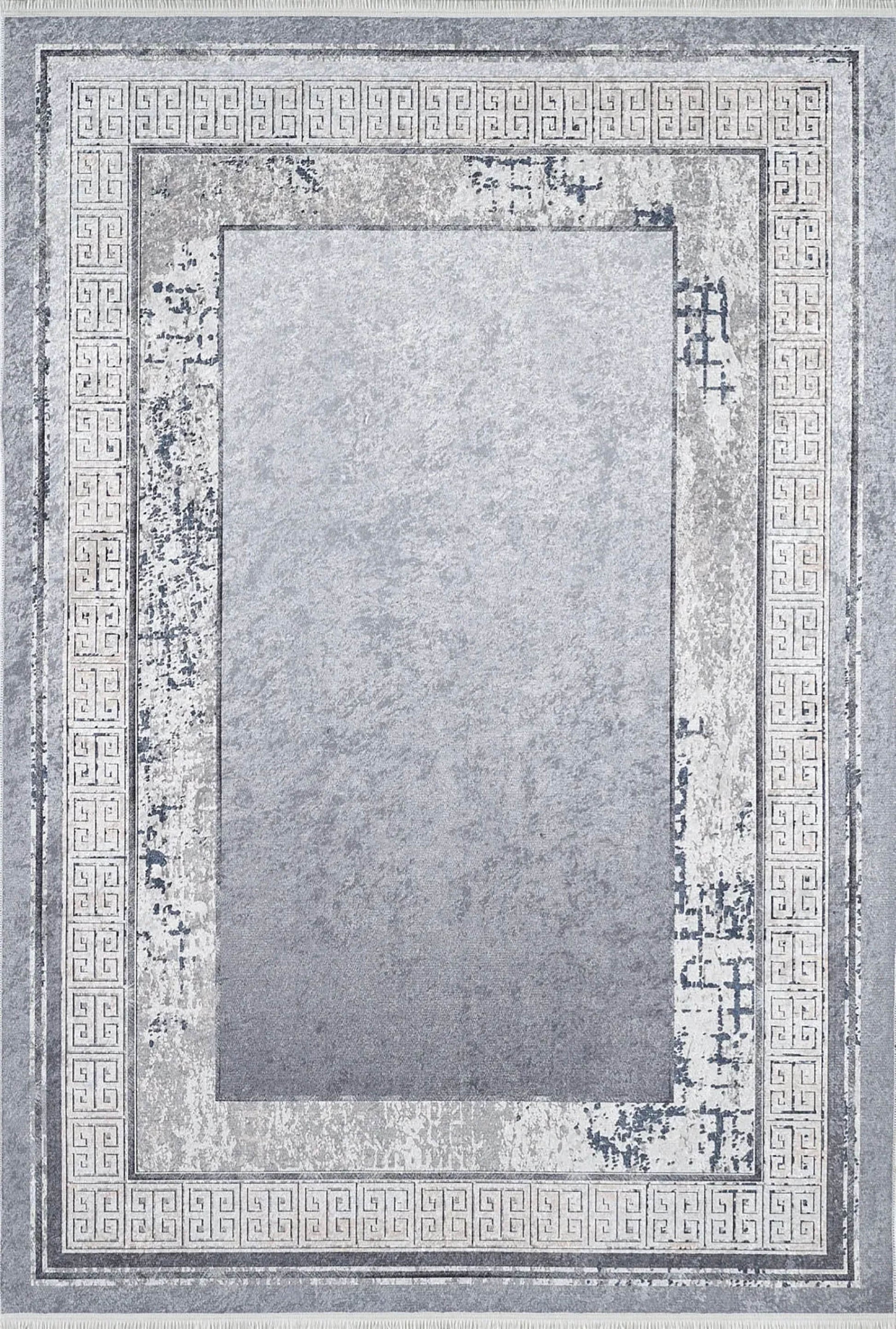Orta tonda gri merkez paneli, modern eskitme detayları ve klasik Yunan Anahtar motifli dikkat çekici bordürleri mükemmel bir dengeyle birleştirir. Bu tasarım, mekana sofistike ve zamansız bir hava katar. Bordürdeki koyu ve açık tonlardaki kontrast, halıya derinlik sağlar. Yumuşak dokusu ve kaymaz taban özelliği sayesinde oturma odası, yemek odası ve koridor gibi tüm yaşam alanlarında güvenli ve estetik bir zemin çözümü sunar.