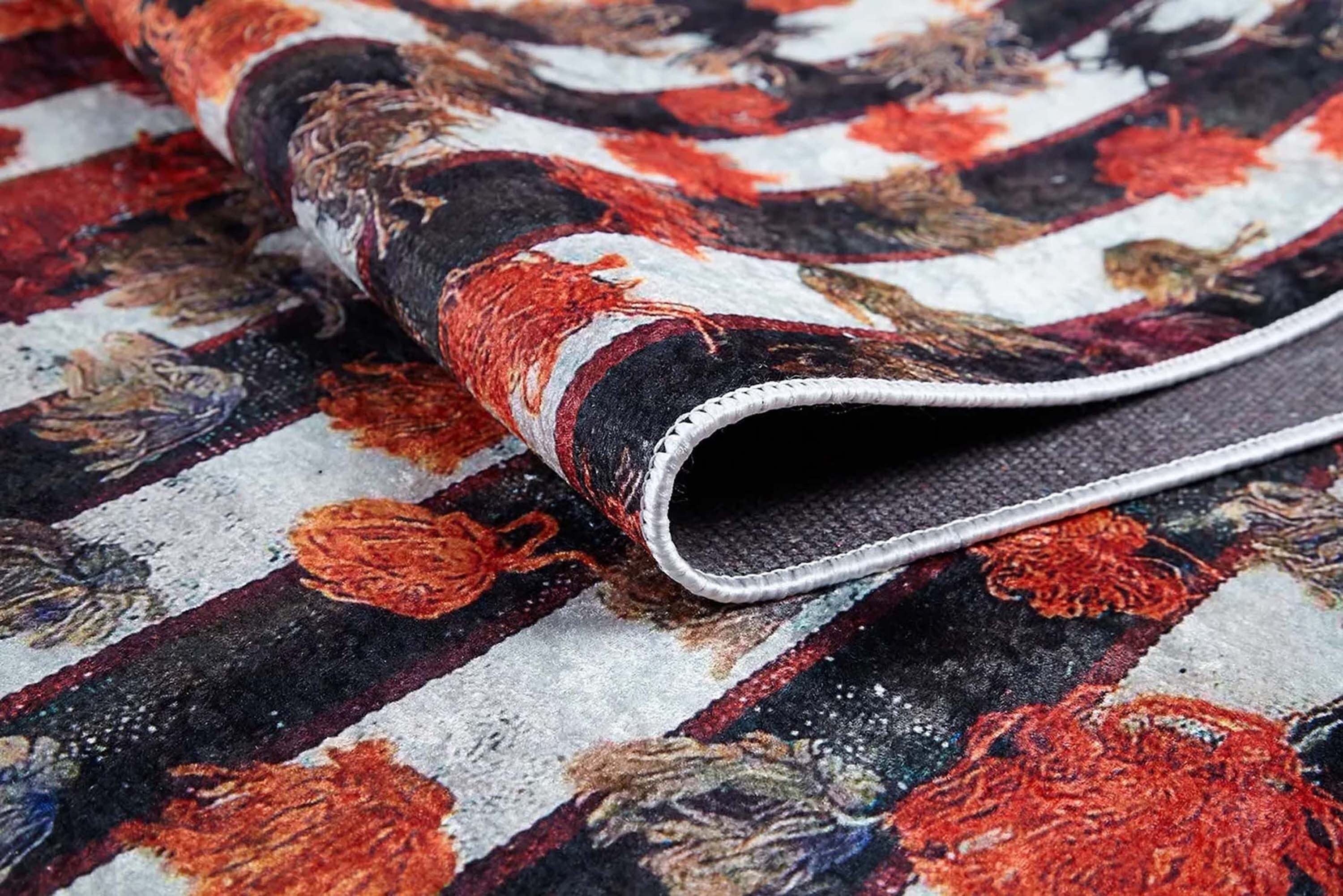 Kırmızı, turuncu, siyah ve beyaz tonların muhteşem uyumunu yansıtan bu halı, vintage esinli kareli deseniyle lüks rustik tarzdan ilham alan bir stil sunar. Dekoratif süslemeleriyle ayağınız altında yarattığı konfor, evin her alanında özel bir dokunuş sağlar.