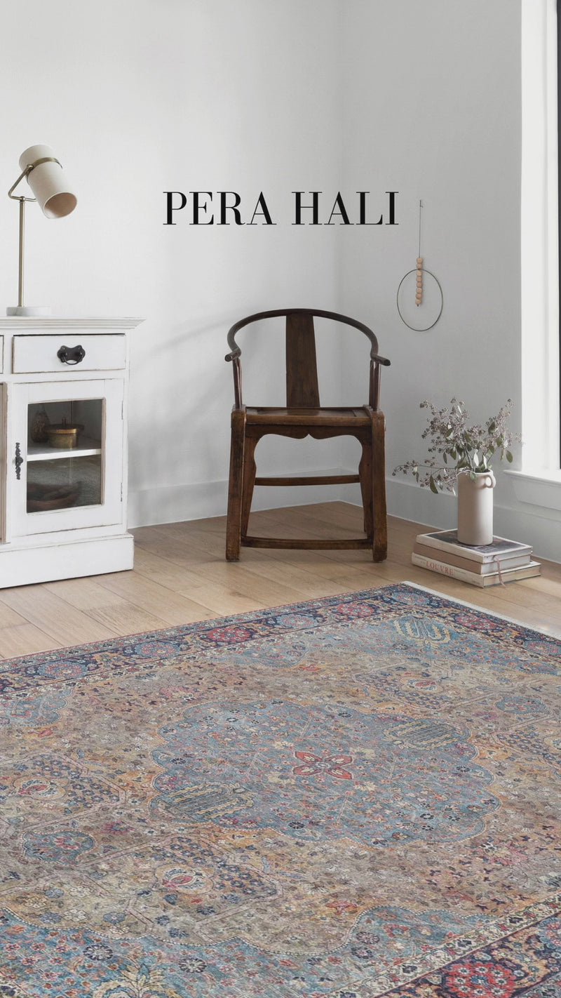 Madalyon geleneksel oryantal halı, oryantal bir atmosfer ve vintage bir tarz sunar. Mavi, sarı ve kırmızı renkler, bu antika tarzı vurgularken solgun tasarımı daha sakin ve yumuşak bir görünüm sağlar. Yenilikçi baskı işlemiyle el dokuması etkisi veren tasarım, her bir düğümü yumuşak bir zeminde detaylı bir şekilde yansıtarak dokulu bir etki oluşturur.