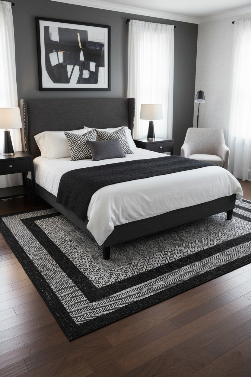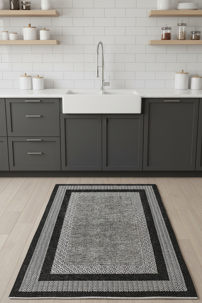 Gri Siyah Modern Yıkanabilir Antibakteriyel Salon Halısı