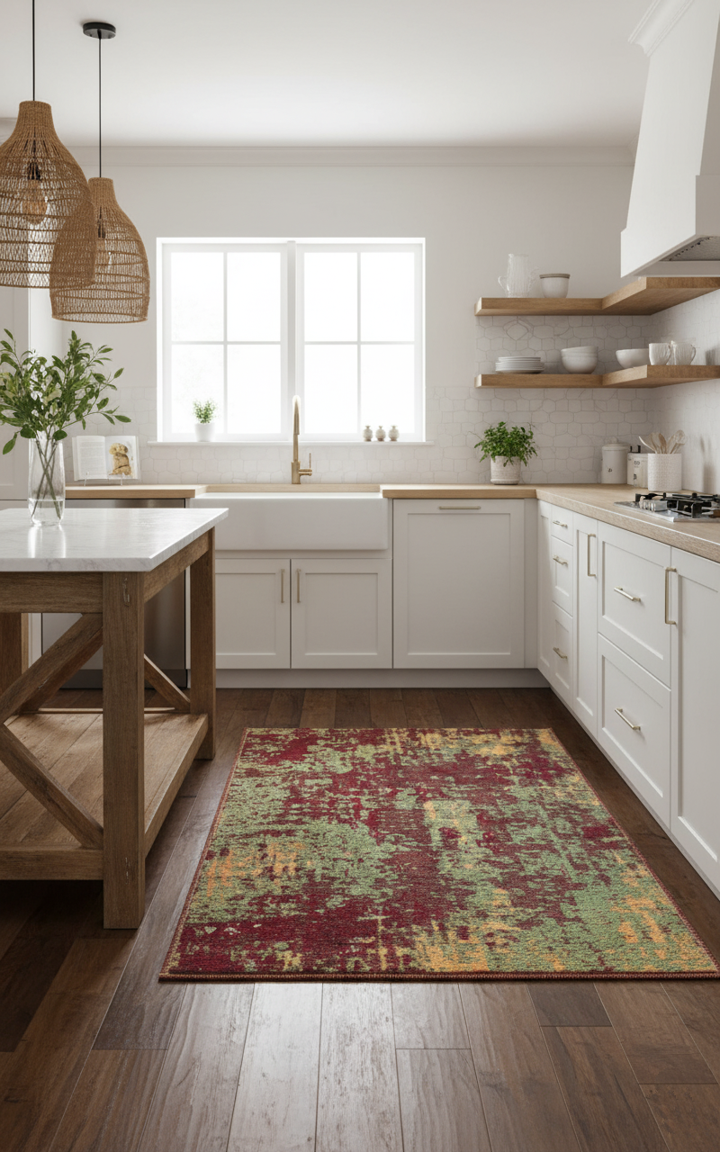 Bu çift taraflı kullanılabilen, makinede yıkanabilir halı; pamuk ve polyester malzemeden üretilmiş olup antibakteriyel, antialerjik özelliklere sahiptir ve koku, tüy yapmaz. Kırmızı ve Yeşil renk seçenekleriyle modern tarzı birleştirir. 7–10 mm hav yüksekliğinde makine dokuması olan bu halı, salon, mutfak, antre veya odalar için idealdir ve üretim hatalarına karşı 2 yıl garantilidir.