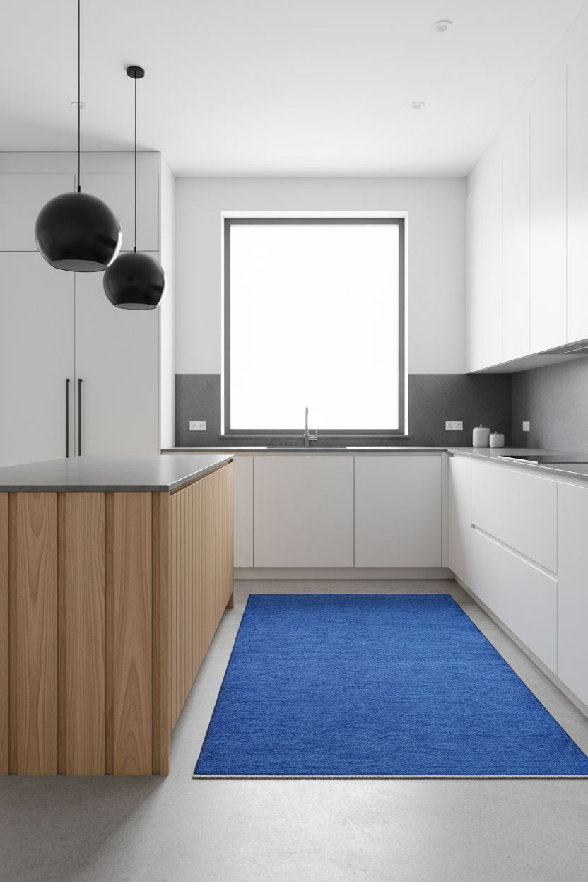 Mavi renkteki bu halı, Pamuk ve Polyester malzemeden Makine Dokuma tekniğiyle üretilmiştir. Düz / Tek Renk deseniyle Modern, Minimal ve Yıkanabilir bir tarza sahiptir. 5–7 mm hav yüksekliği bulunan bu halı, Dikdörtgen ve Yolluk şeklinde mevcuttur. Salon, Çocuk Odası, Mutfak, Yolluk, Antre ve Oda gibi evin birçok farklı alanında kullanıma uygundur. Çamaşır makinesinde yıkanabilir olması kolay temizlik sağlarken, baskı boyama olmadığı için renk vermez. Aynı zamanda antibakteriyel ve antialerjik özellikleriyle sağlıklı bir ortam sunar, koku yapmaz, hav ve tüy çıkarmaz. Ürün, 2 yıl üretim ve işçilik hatalarına karşı garantilidir.