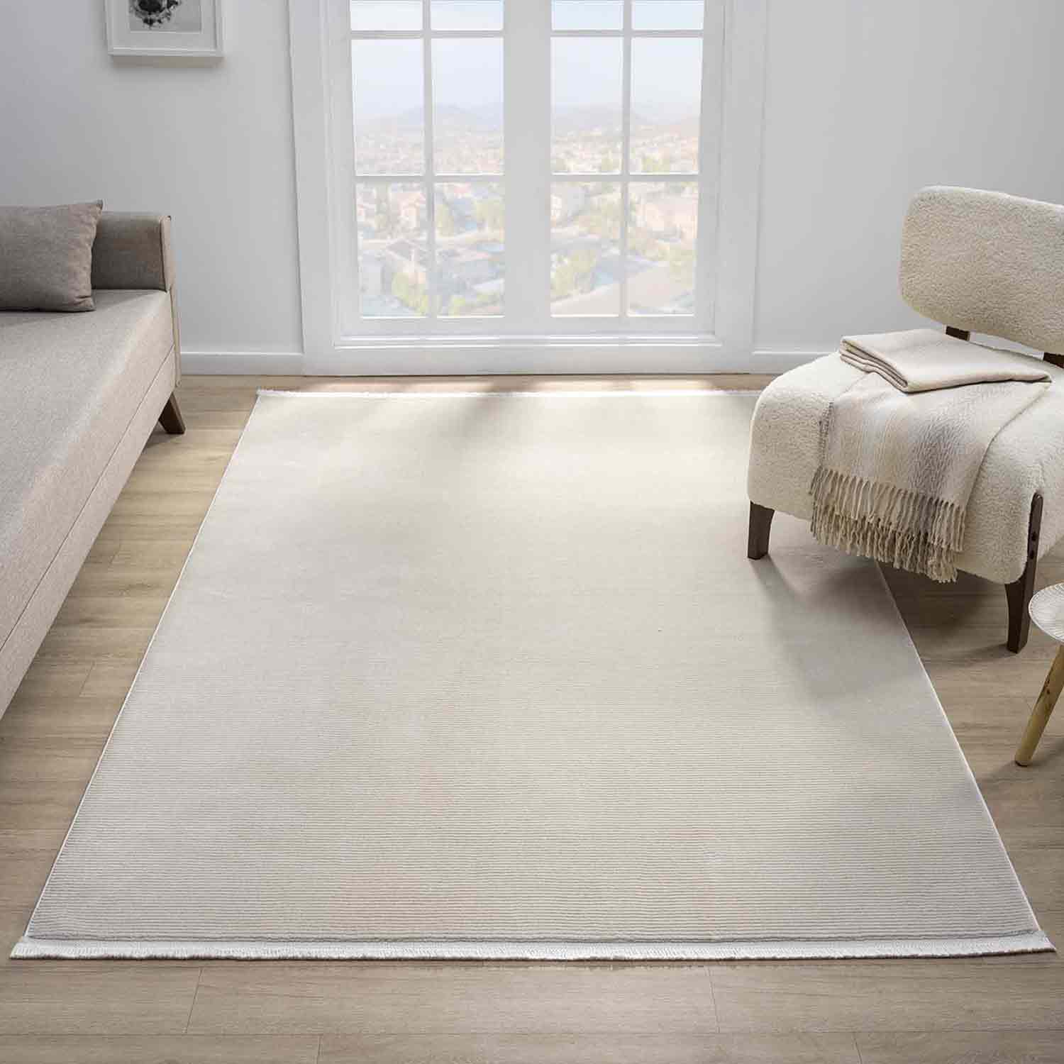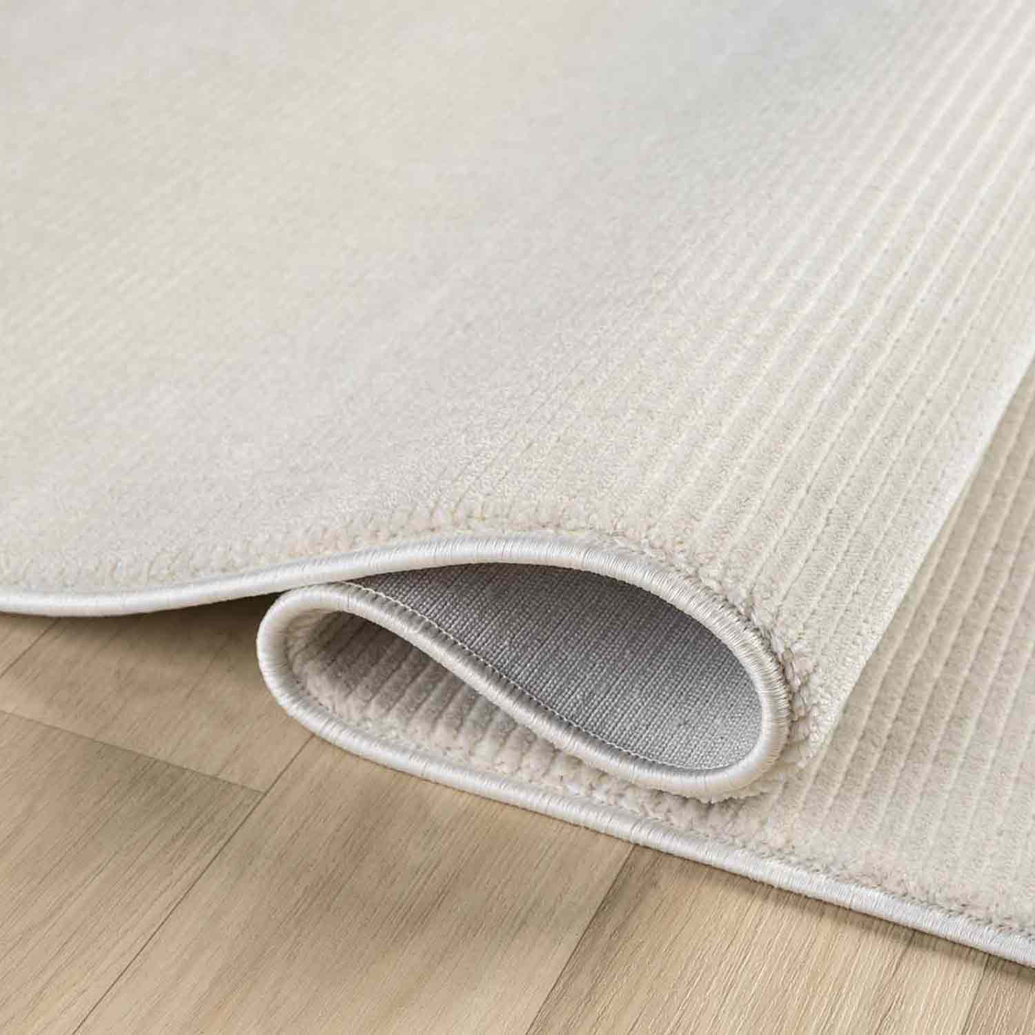 Modern ev dekorasyonuna uyum sağlayan, pratik kullanımlı ve şık halılarımızla tanışın! Bu dijital baskılı, yıkanabilir halı; açık gri ve beyaza yakın tonların ince dikey çizgi (fitilli/kadife benzeri) efektiyle birleştiği, düz ve minimalist bir görünüme sahiptir. Göz yormayan, her ortama kolayca adapte olan bir zarafet sunar. Kolay temizlenebilir yapısıyla çocuklu ve evcil hayvanlı evler için idealdir. Evinizin havasını anında değiştirin!