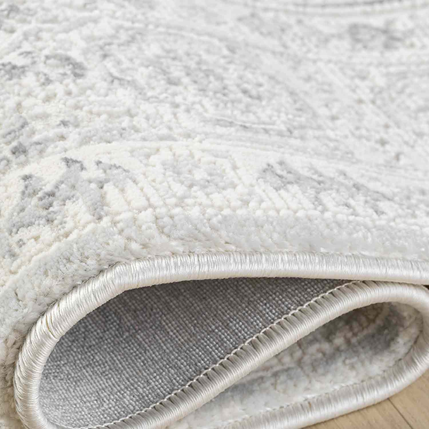 Modern ev dekorasyonuna uyum sağlayan, pratik kullanımlı ve şık halılarımızla tanışın! Bu dijital baskılı, yıkanabilir halı; beyaz ve açık gri tonlarının ton sür ton iç içe geçmiş motiflerle oluşturduğu minimalist ve eskitme (vintage/distressed) bir görünüme sahiptir. O kadar açık renkli ki, odanızdaki her şeyi anında ferahlatır. Kolay temizlenebilir yapısıyla çocuklu ve evcil hayvanlı evler için idealdir. Evinizin havasını anında değiştirin!