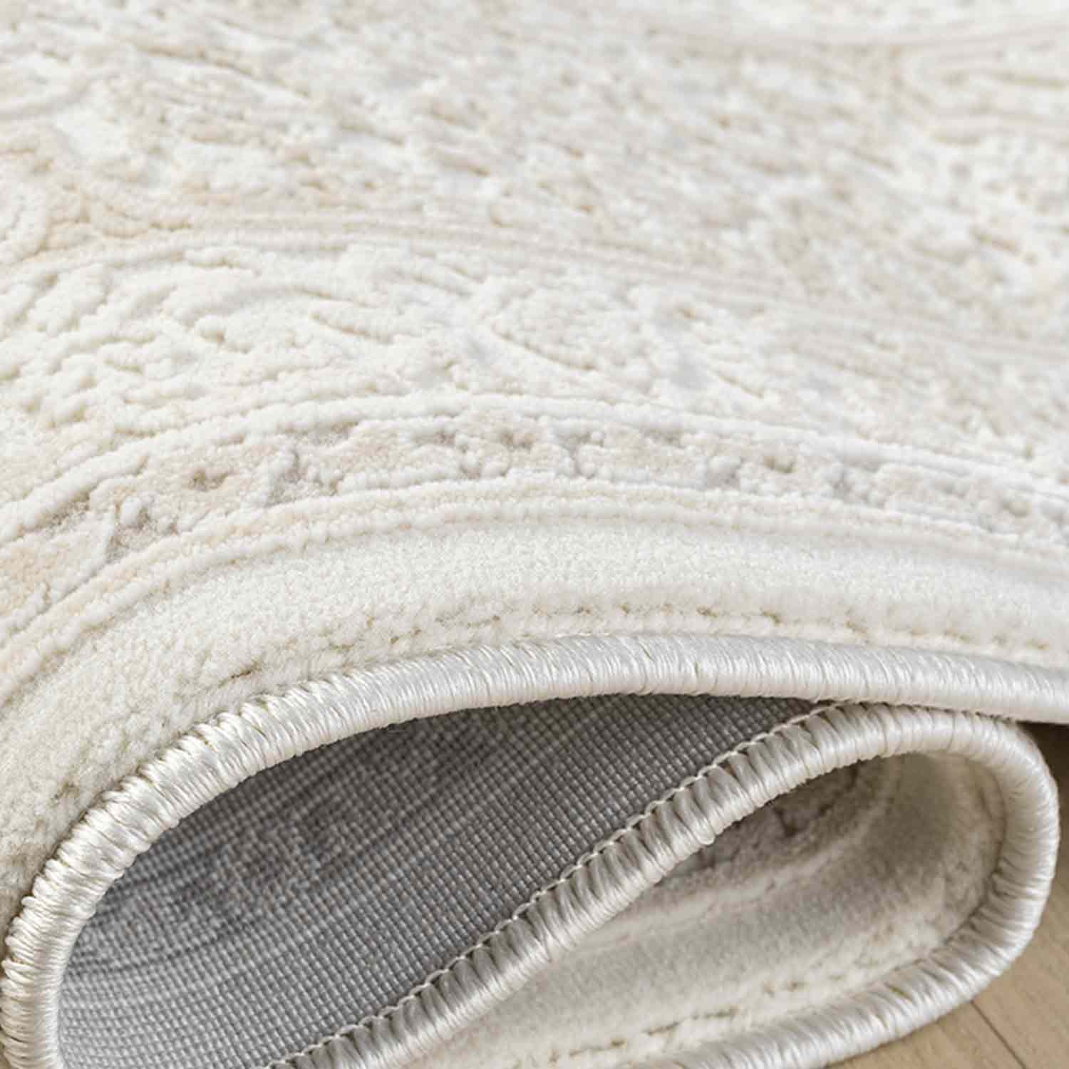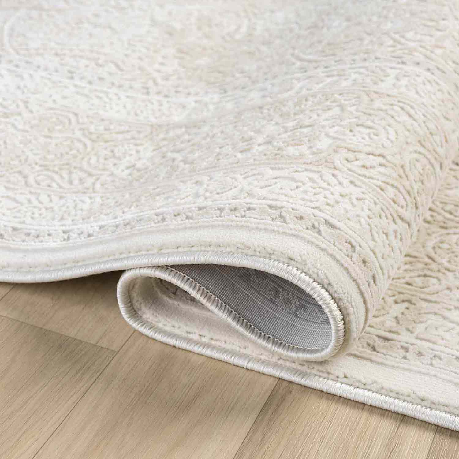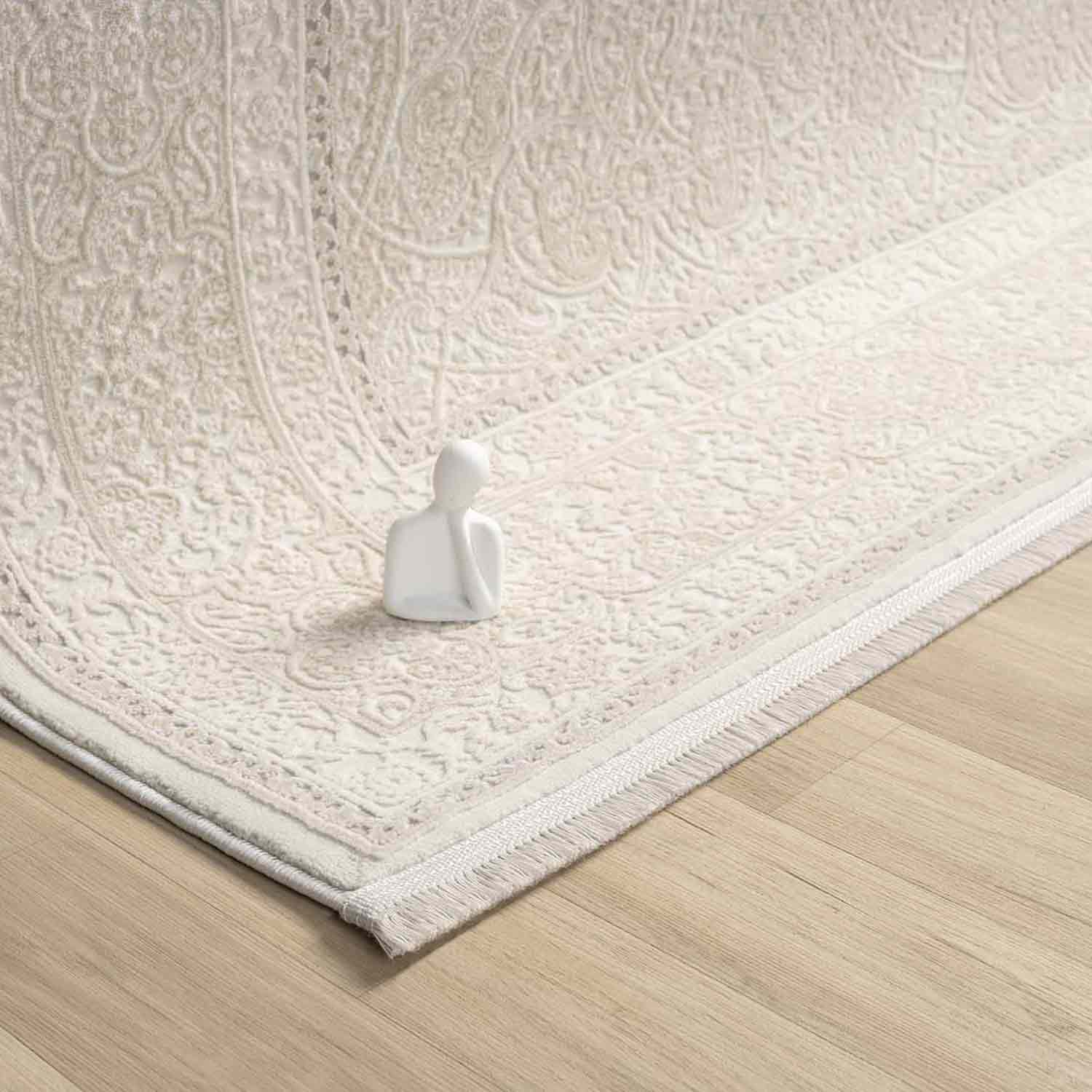 Modern ev dekorasyonuna uyum sağlayan, pratik kullanımlı ve şık halılarımızla tanışın! Bu dijital baskılı, yıkanabilir halı; krem ve bej tonlarının ton sür ton kabartmalarıyla, geleneksel klasik desenleri minimalist ve zarif bir şekilde sunar. Halıdan çok, zemine lüks bir dantel örtü serilmiş gibi duruyor. Kolay temizlenebilir yapısıyla çocuklu ve evcil hayvanlı evler için idealdir. Evinizin havasını anında değiştirin!