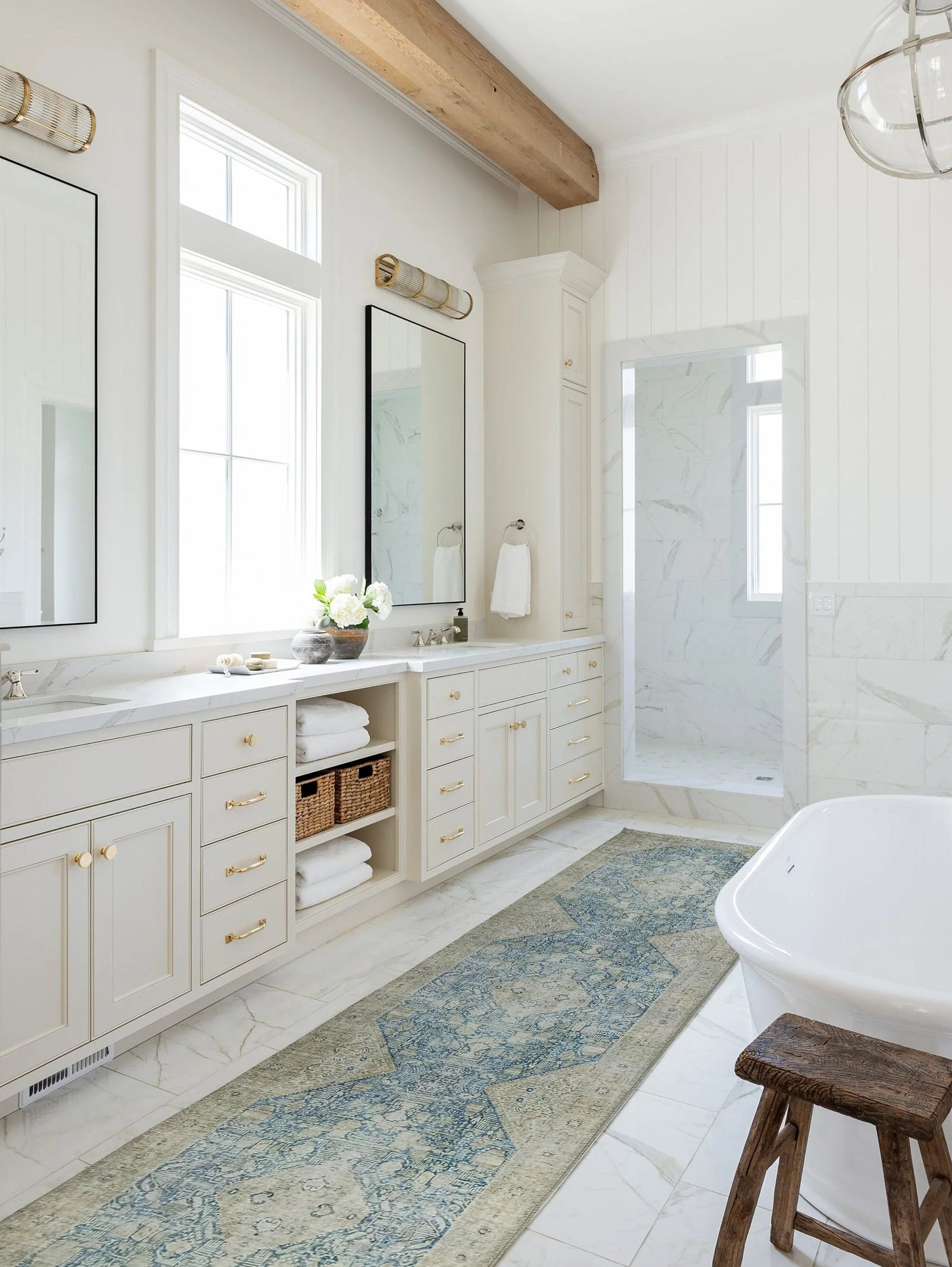 Mit seiner dekorativen und funktionalen Struktur verleiht dieser Teppich modernen Wohnungen eine zeitlose Vintage-Eleganz.