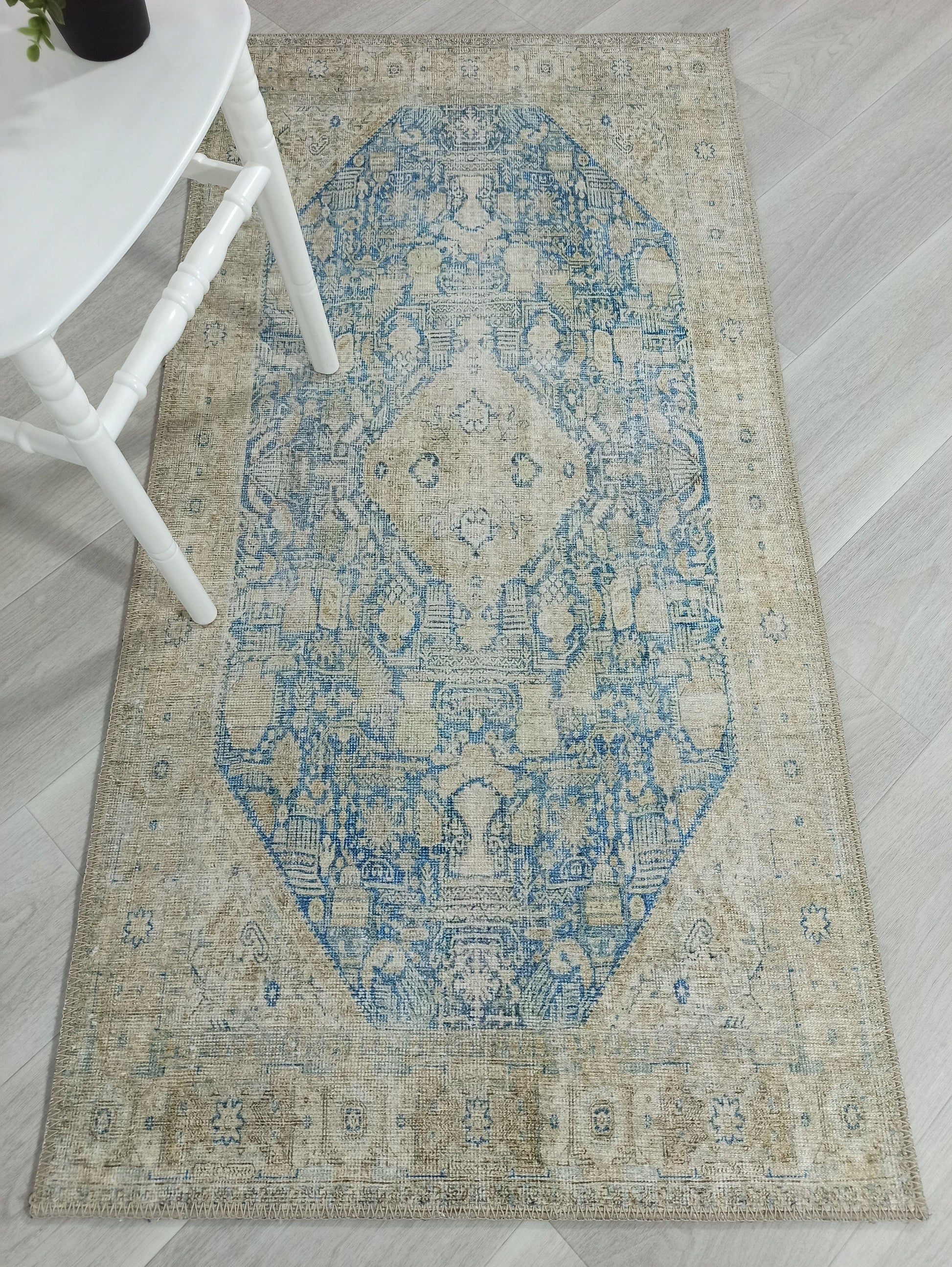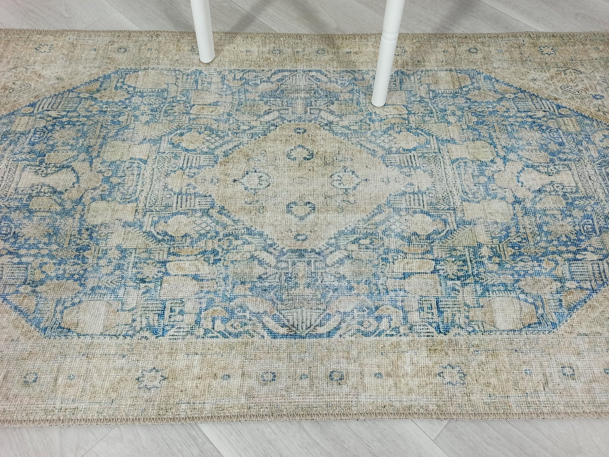 Kırmızı ve Mavi Madalyon Desenli Vintage Halı
