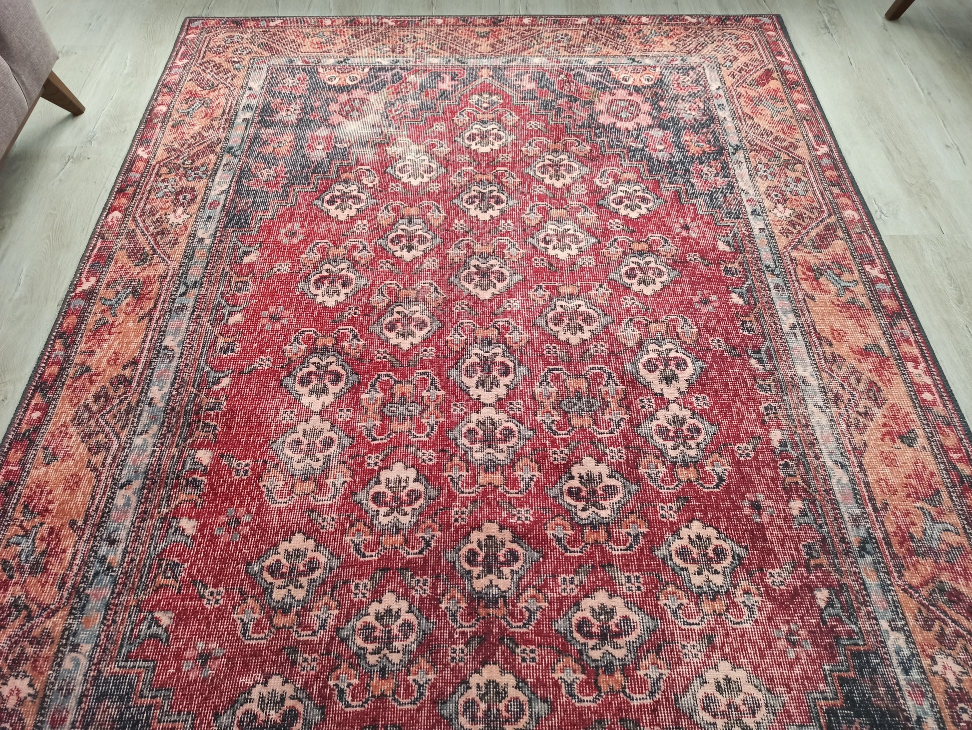 Mercan Kırmızı ve Mavi Renkli Vintage Halısı