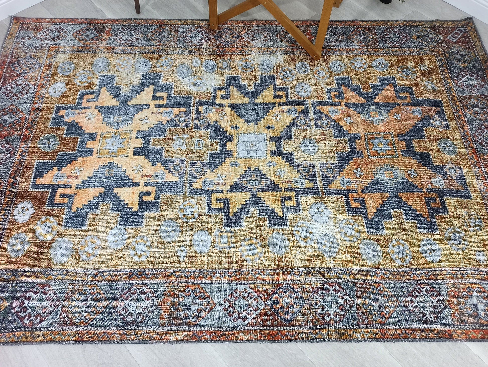 Dank seiner robusten Struktur und seines zeitlosen Vintage-Stils passt dieser Teppich perfekt zu modernen und klassischen Einrichtungen.